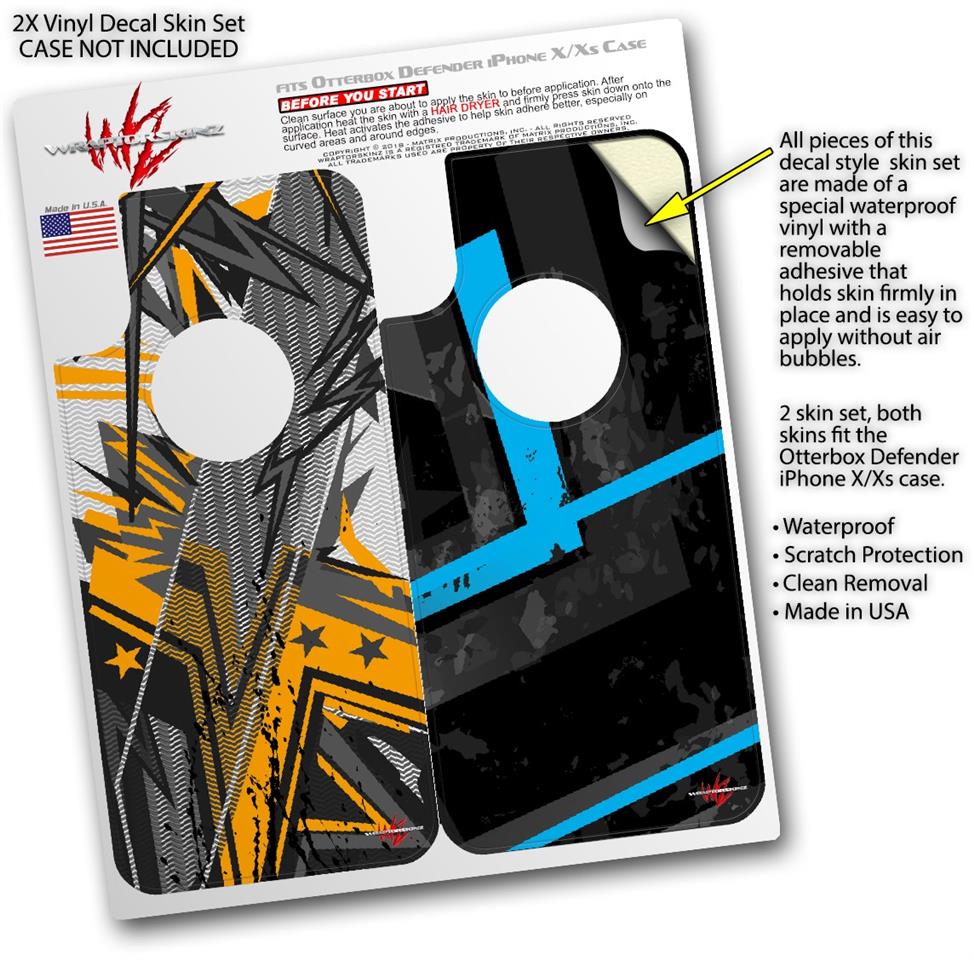 2x Decal style Skin Wrap Set compatible with Otterbox Defender iPhone X and Xs Case - Baja 0032 Orange (CASE NOT INCLUDED)