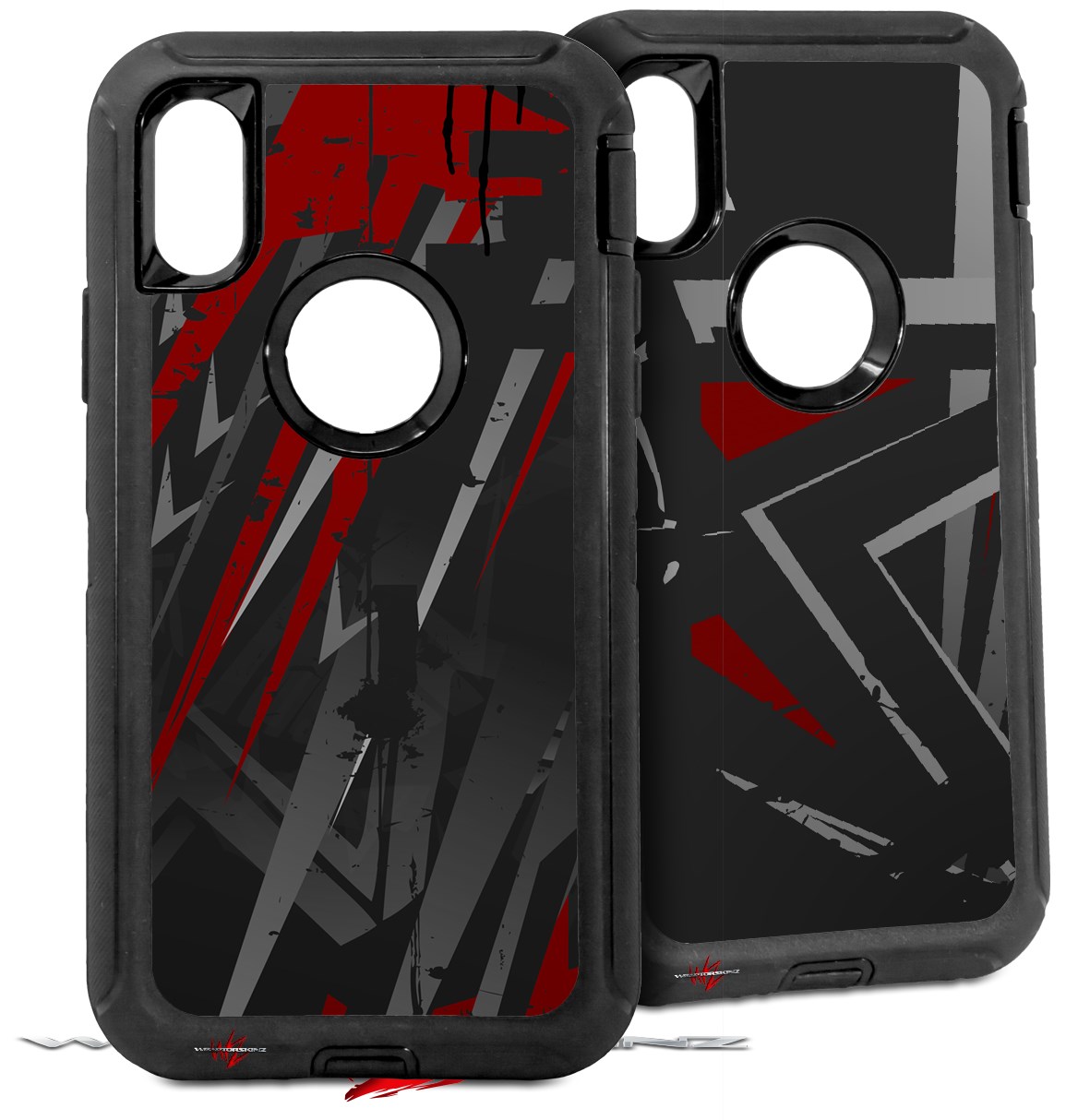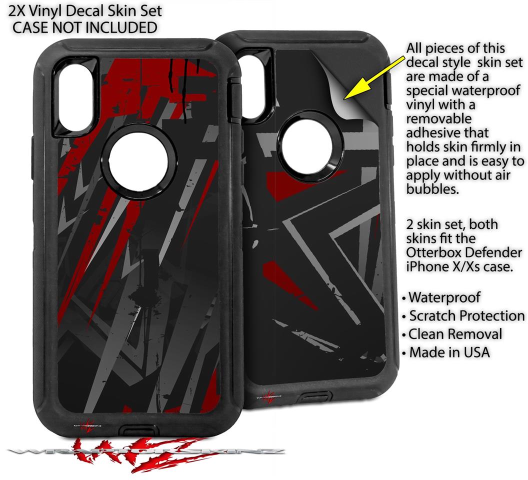 2x Decal style Skin Wrap Set compatible with Otterbox Defender iPhone X and Xs Case - Baja 0014 Red Dark (CASE NOT INCLUDED)