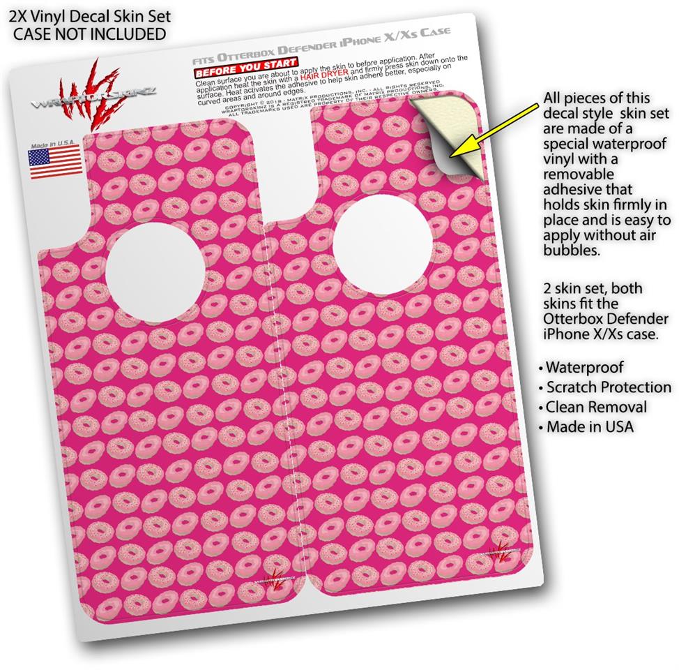 2x Decal style Skin Wrap Set compatible with Otterbox Defender iPhone X and Xs Case - Donuts Hot Pink Fuchsia (CASE NOT INCLUDED)