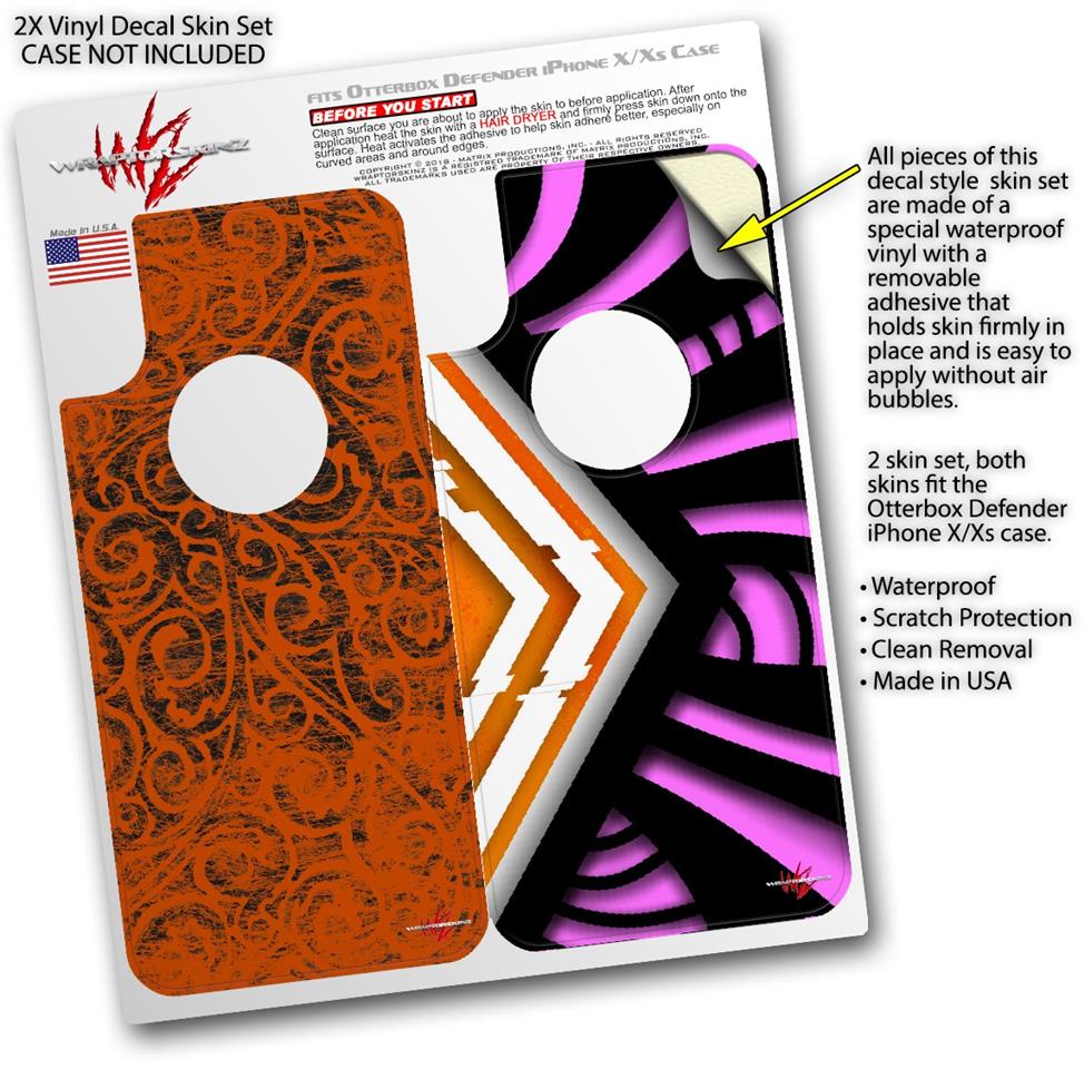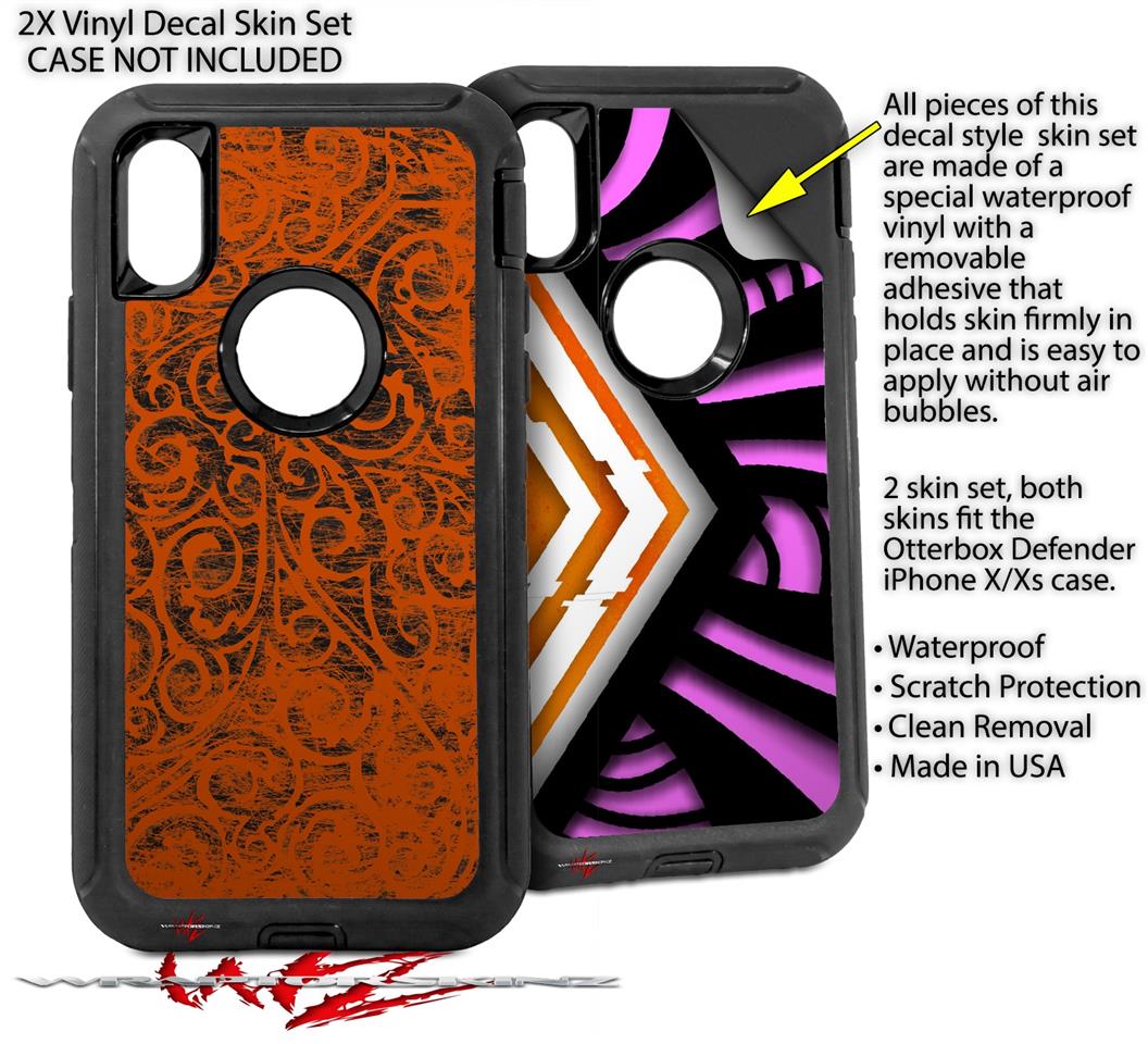 2x Decal style Skin Wrap Set compatible with Otterbox Defender iPhone X and Xs Case - Folder Doodles Burnt Orange (CASE NOT INCLUDED)
