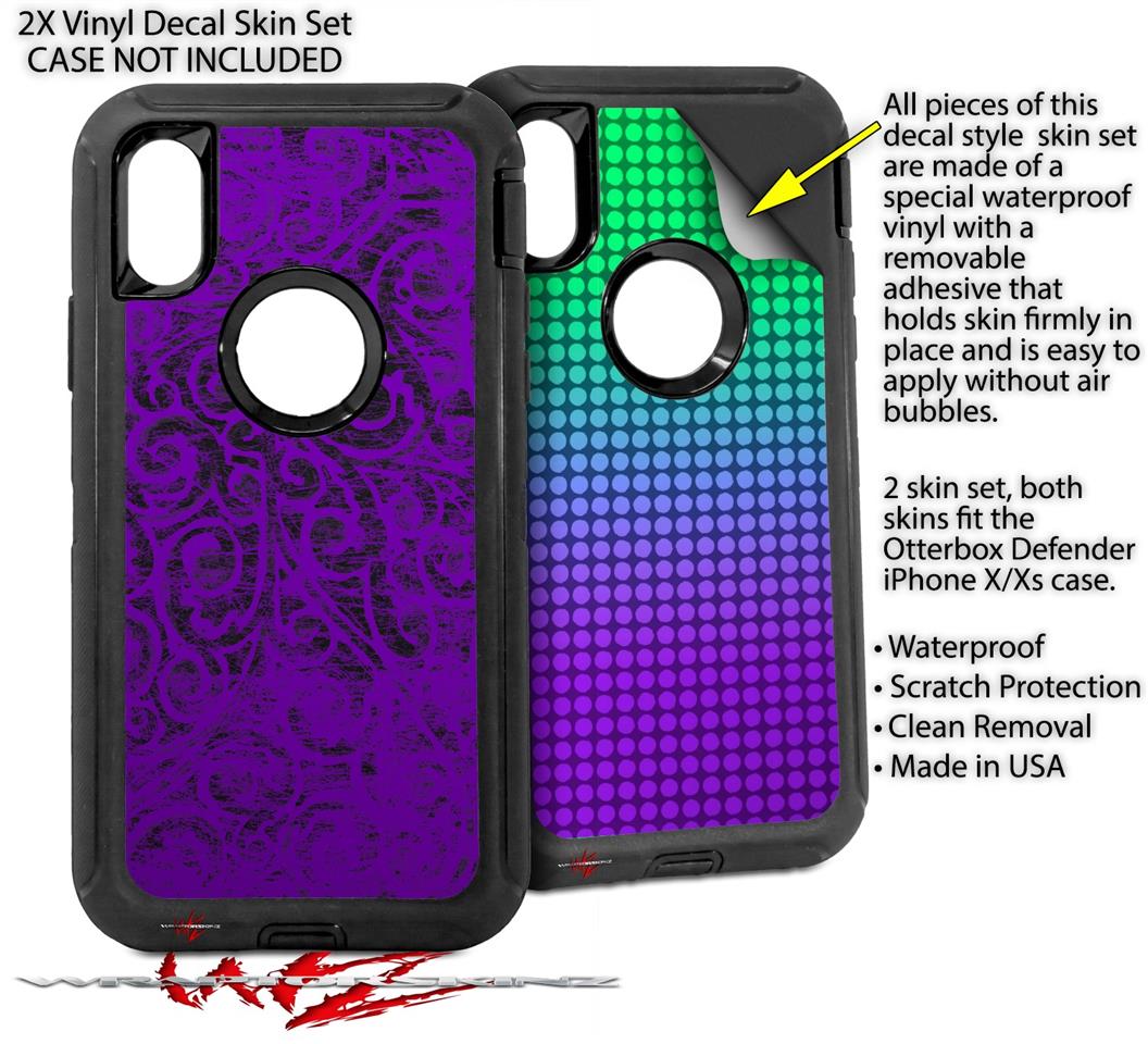 2x Decal style Skin Wrap Set compatible with Otterbox Defender iPhone X and Xs Case - Folder Doodles Purple (CASE NOT INCLUDED)