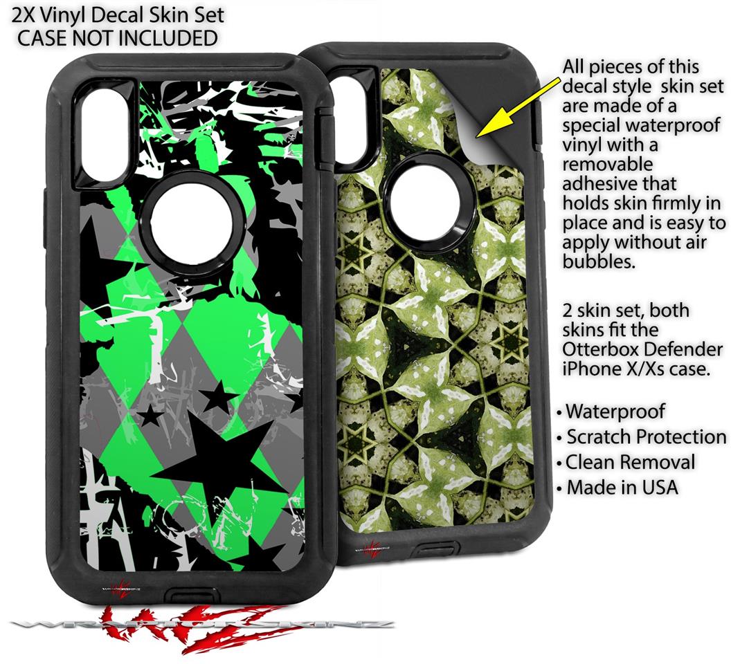 2x Decal style Skin Wrap Set compatible with Otterbox Defender iPhone X and Xs Case - SceneKid Green (CASE NOT INCLUDED)
