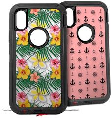 2x Decal style Skin Wrap Set compatible with Otterbox Defender iPhone X and Xs Case - Beach Flowers 02 White (CASE NOT INCLUDED)
