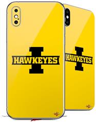 2 Decal style Skin Wraps set compatible with Apple iPhone X and XS Iowa Hawkeyes 02 Black on Gold