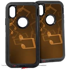 2x Decal style Skin Wrap Set compatible with Otterbox Defender iPhone X and Xs Case - Bokeh Music Orange (CASE NOT INCLUDED)