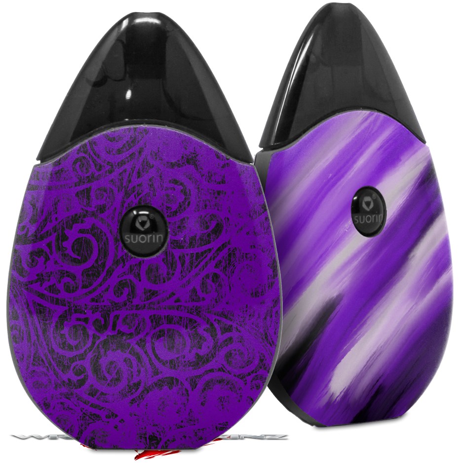 Skin Decal Wrap 2 Pack compatible with Suorin Drop Folder Doodles Purple VAPE NOT INCLUDED