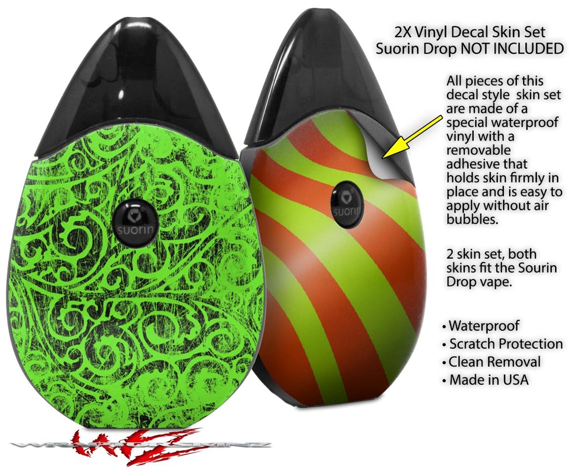 Skin Decal Wrap 2 Pack compatible with Suorin Drop Folder Doodles Neon Green VAPE NOT INCLUDED