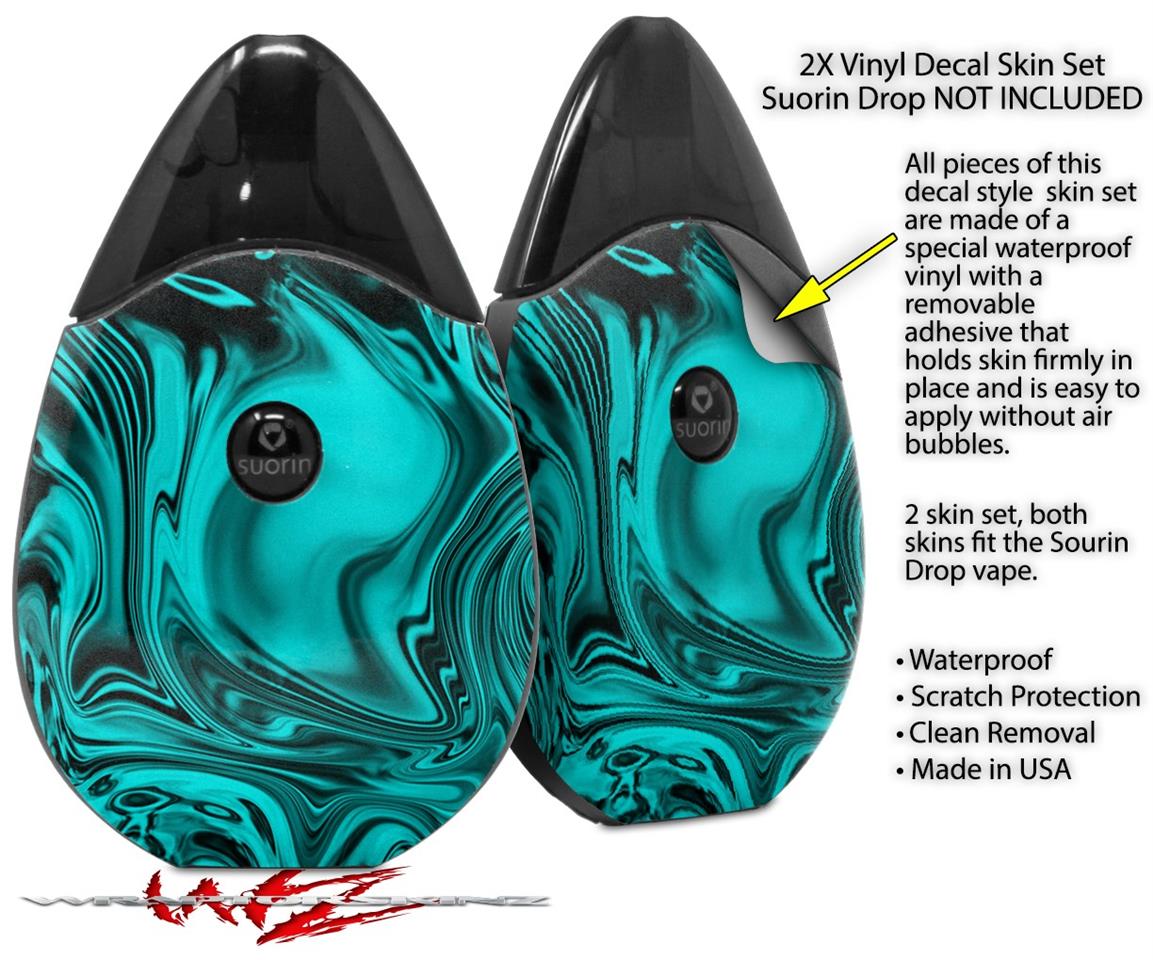 Skin Decal Wrap 2 Pack compatible with Suorin Drop Liquid Metal Chrome Neon Teal VAPE NOT INCLUDED