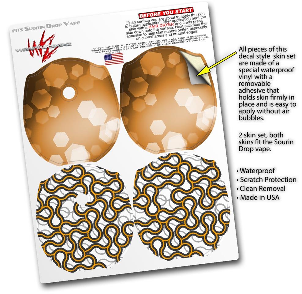 Skin Decal Wrap 2 Pack compatible with Suorin Drop Bokeh Hex Orange VAPE NOT INCLUDED