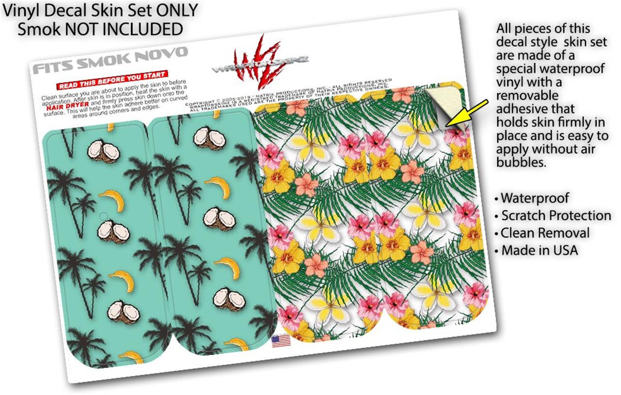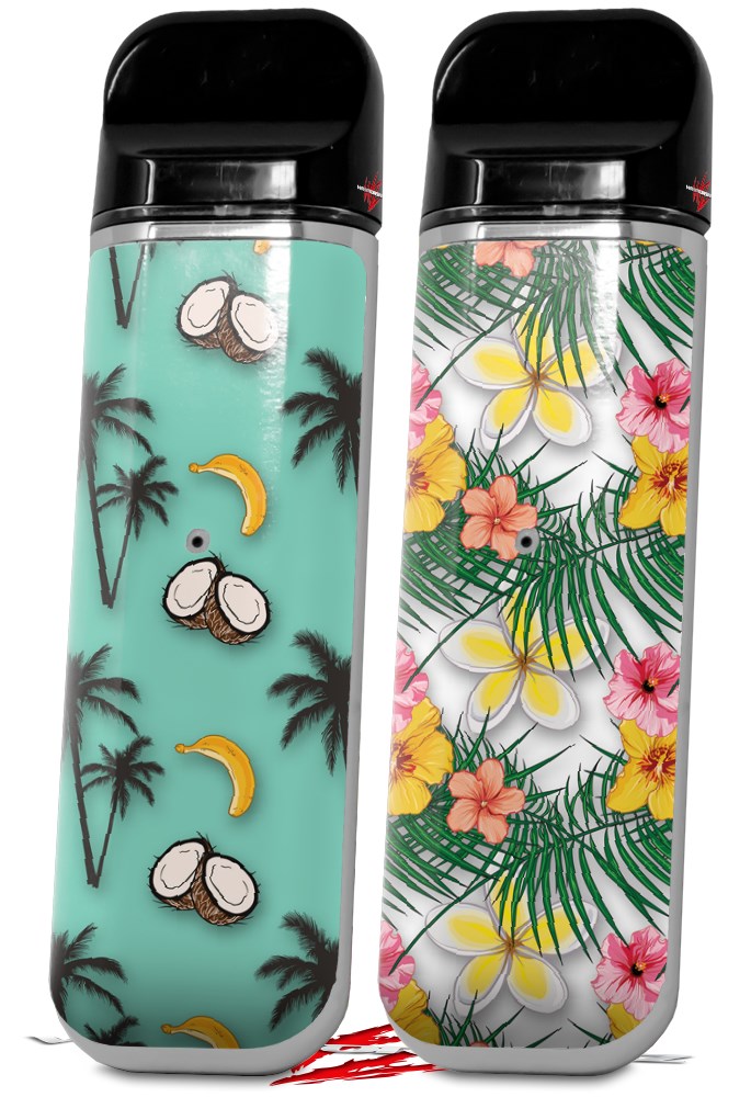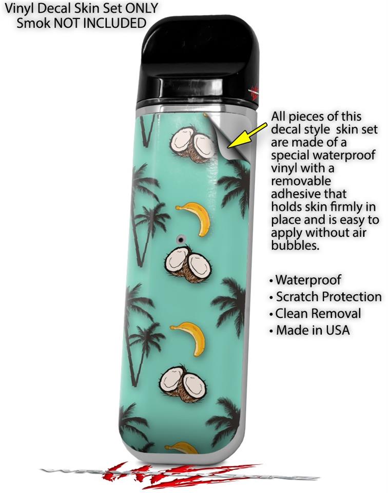 Skin Decal Wrap 2 Pack for Smok Novo v1 Coconuts Palm Trees and Bananas Seafoam Green VAPE NOT INCLUDED