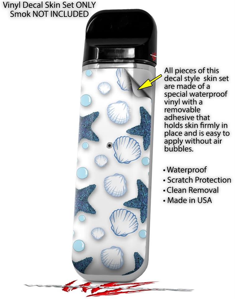 Skin Decal Wrap 2 Pack for Smok Novo v1 Starfish and Sea Shells White VAPE NOT INCLUDED