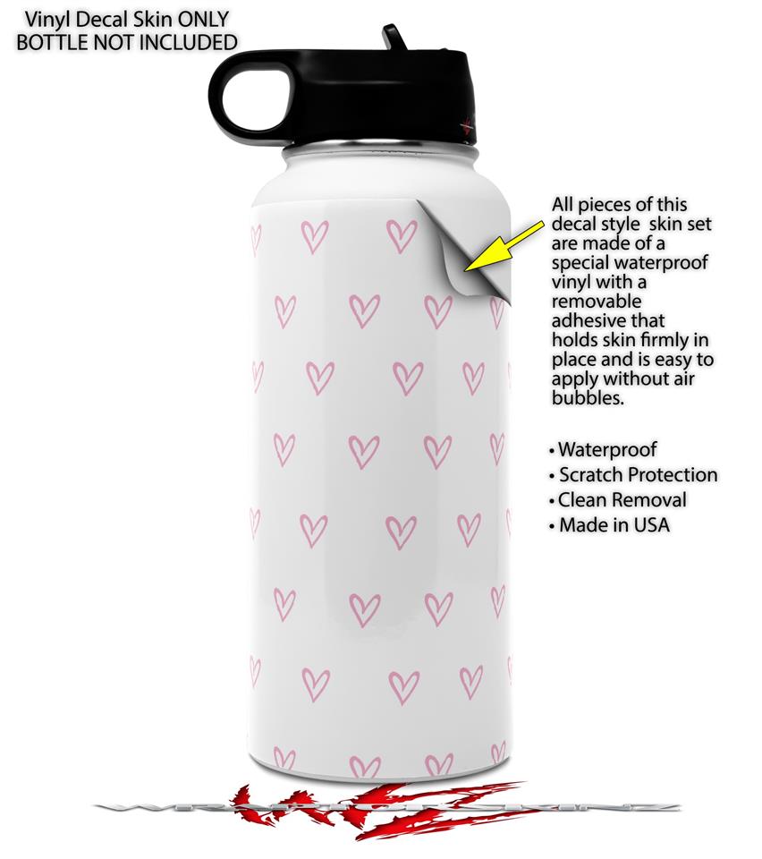 Skin Wrap Decal compatible with Hydro Flask Wide Mouth Bottle 32oz Hearts Pink (BOTTLE NOT INCLUDED)