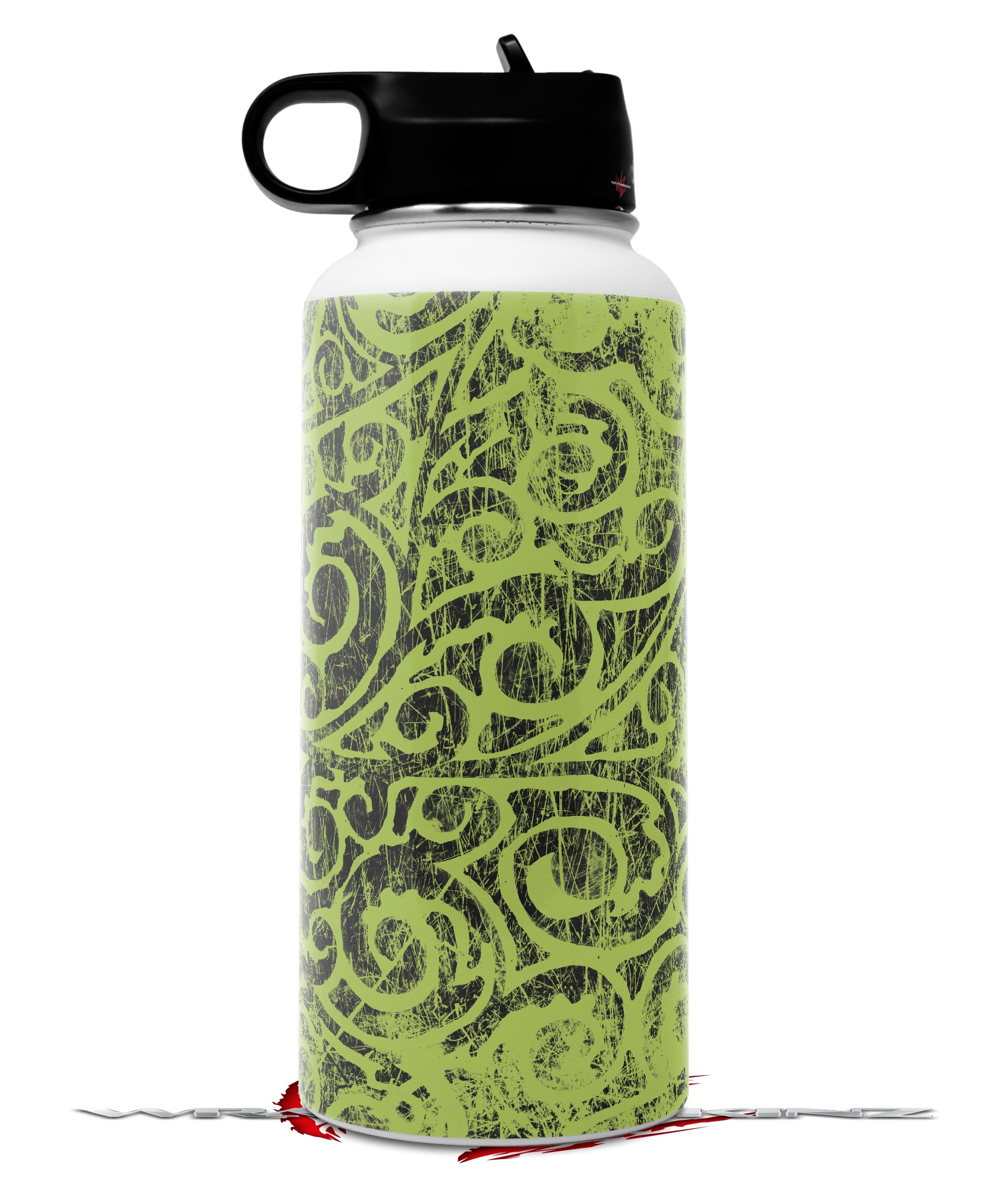 Skin Wrap Decal compatible with Hydro Flask Wide Mouth Bottle 32oz Folder Doodles Sage Green (BOTTLE NOT INCLUDED)