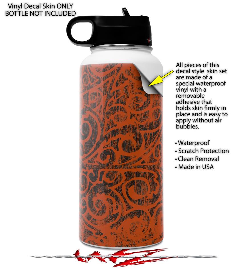 Skin Wrap Decal compatible with Hydro Flask Wide Mouth Bottle 32oz Folder Doodles Burnt Orange (BOTTLE NOT INCLUDED)