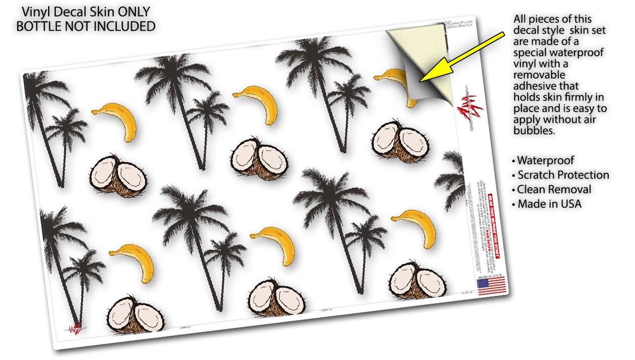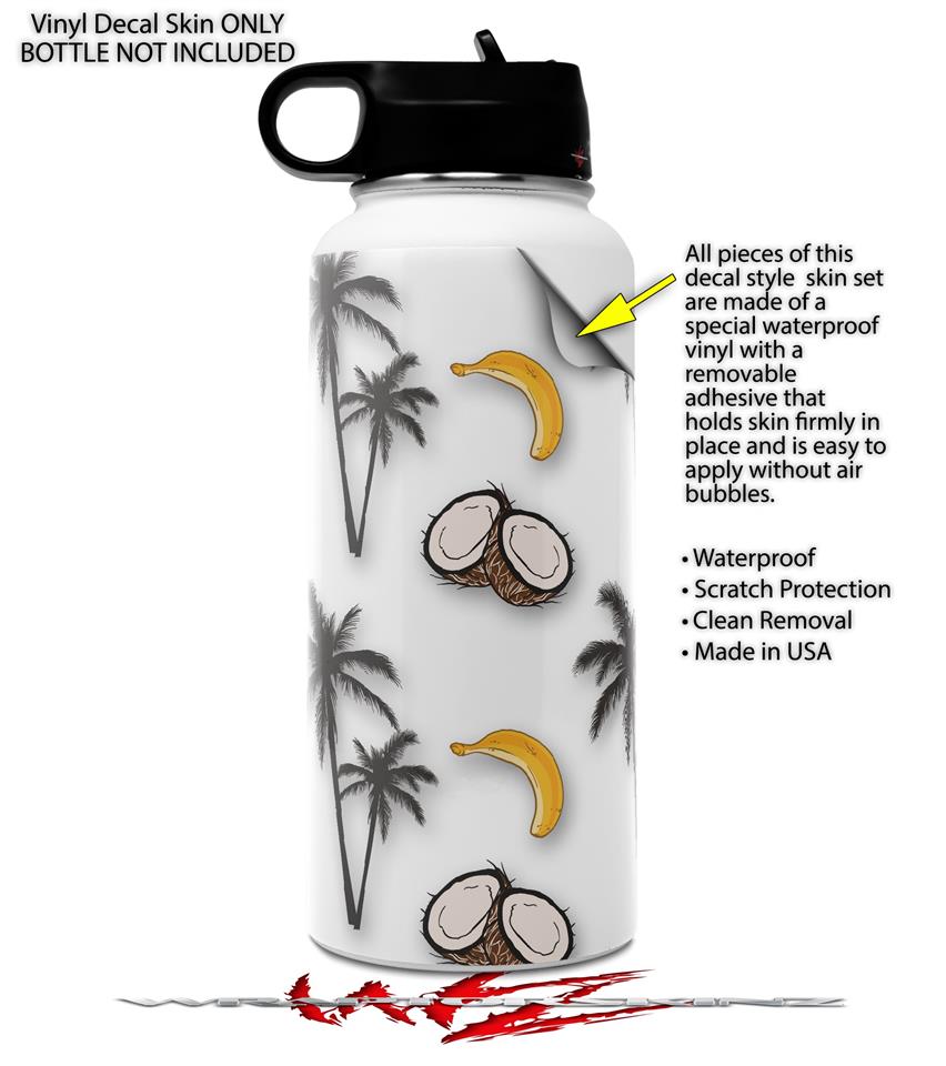 Skin Wrap Decal compatible with Hydro Flask Wide Mouth Bottle 32oz Coconuts Palm Trees and Bananas White (BOTTLE NOT INCLUDED)
