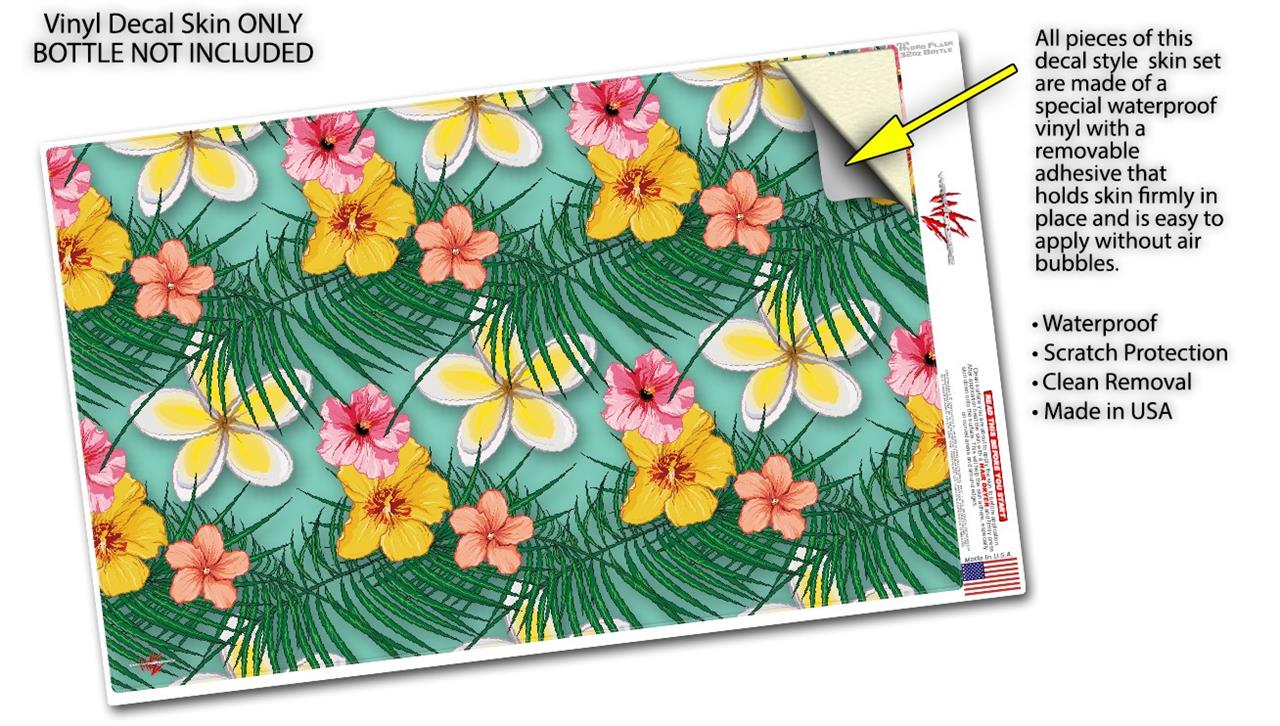 Skin Wrap Decal compatible with Hydro Flask Wide Mouth Bottle 32oz Beach Flowers 02 Seafoam Green (BOTTLE NOT INCLUDED)
