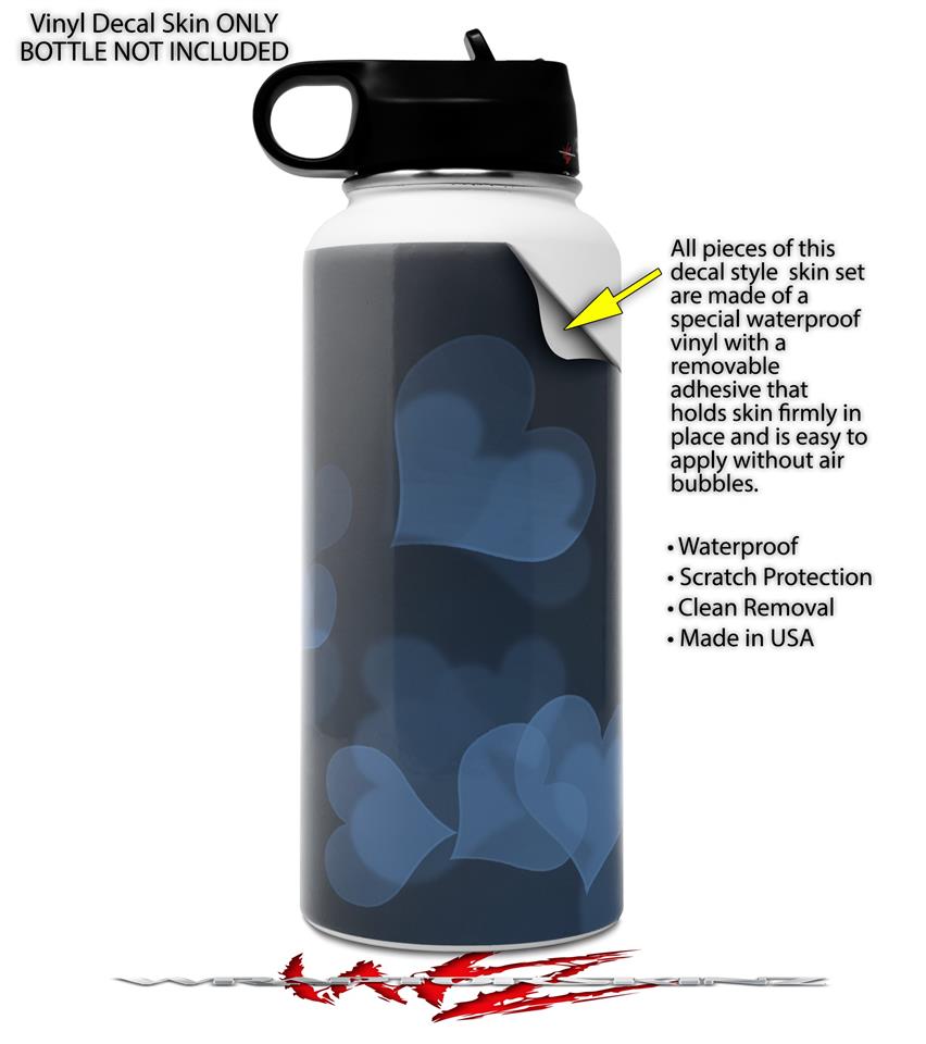 Skin Wrap Decal compatible with Hydro Flask Wide Mouth Bottle 32oz Bokeh Hearts Blue (BOTTLE NOT INCLUDED)