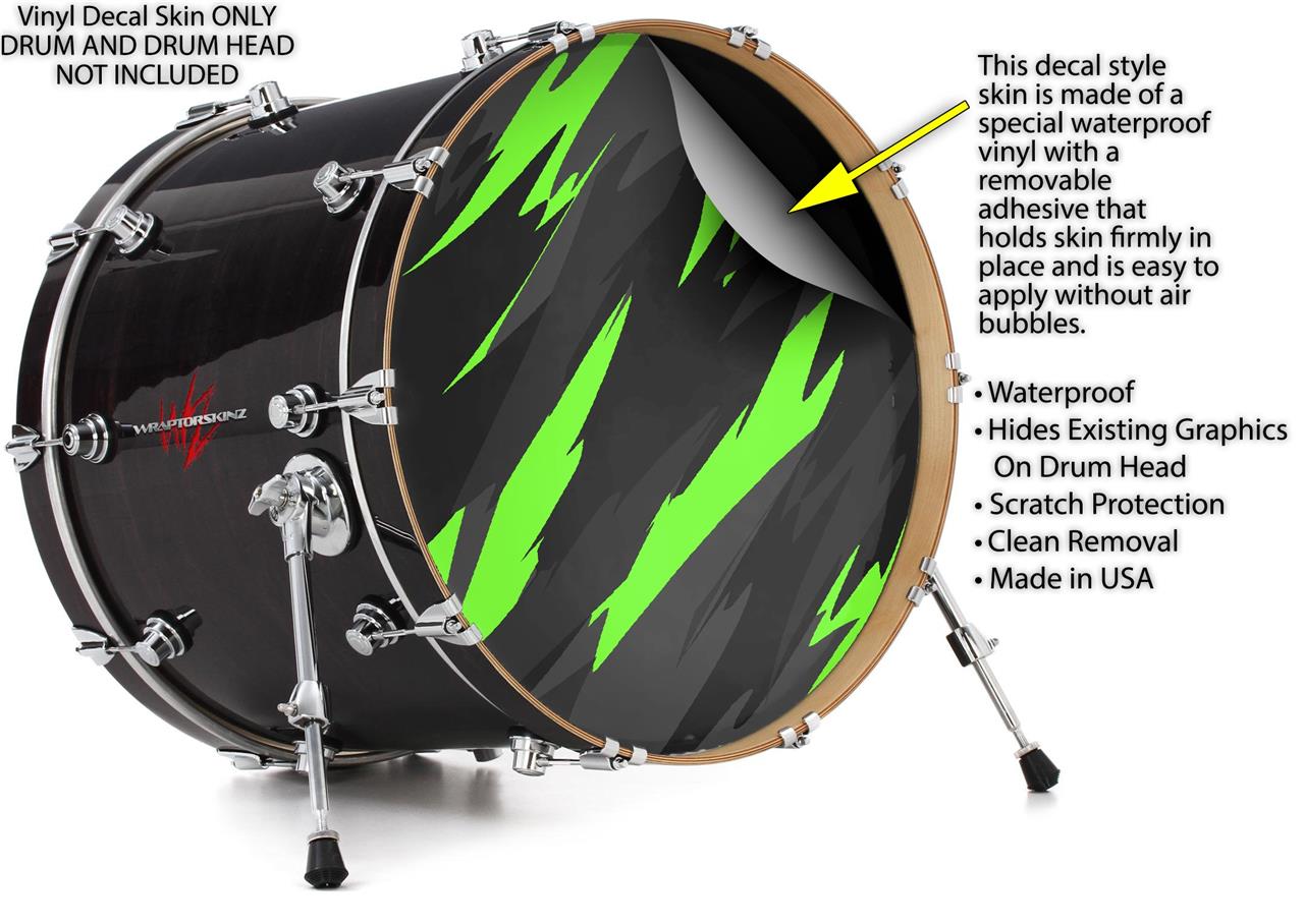 Vinyl Decal Skin Wrap for 22" Bass Kick Drum Head Jagged Camo Neon Green - DRUM HEAD NOT INCLUDED