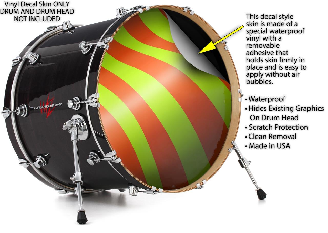 Vinyl Decal Skin Wrap for 22" Bass Kick Drum Head Two Tone Waves Neon Green Orange - DRUM HEAD NOT INCLUDED