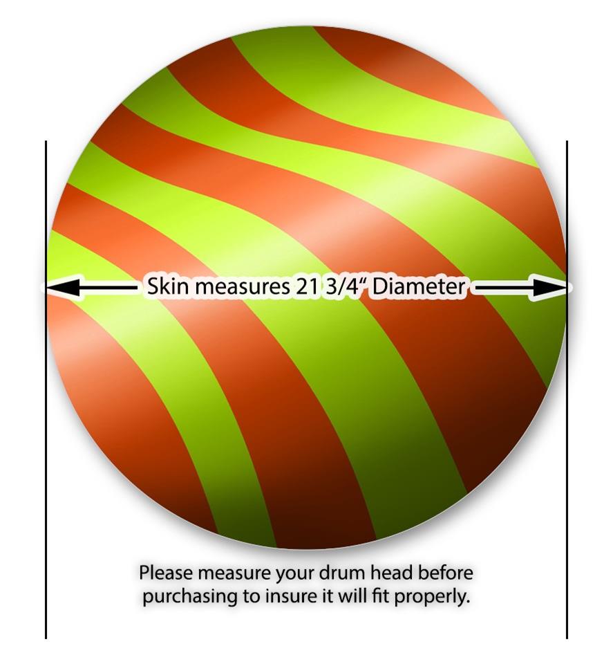 This design also available in other sizes. WraptorSkinz® skin wraps compatible with most kick drum heads. Printed using superb photo quality designs and vibrant colors printed with special fade resistant inks that last even in direct sun for years. WraptorSkinz are a composite three layer commercial grade materials vinyl. The bottom layer is a air release, grey block out removable adhesive that hides existing graphics on the drum head and is easily applied without air bubbles. The middle layer is a flexible vinyl printed with UV protected, fade resistant inks that deliver superb photo quality designs in vibrant colors. Finally, we bond a professional grade laminate over the entire skin adding a glossy protective finish.
