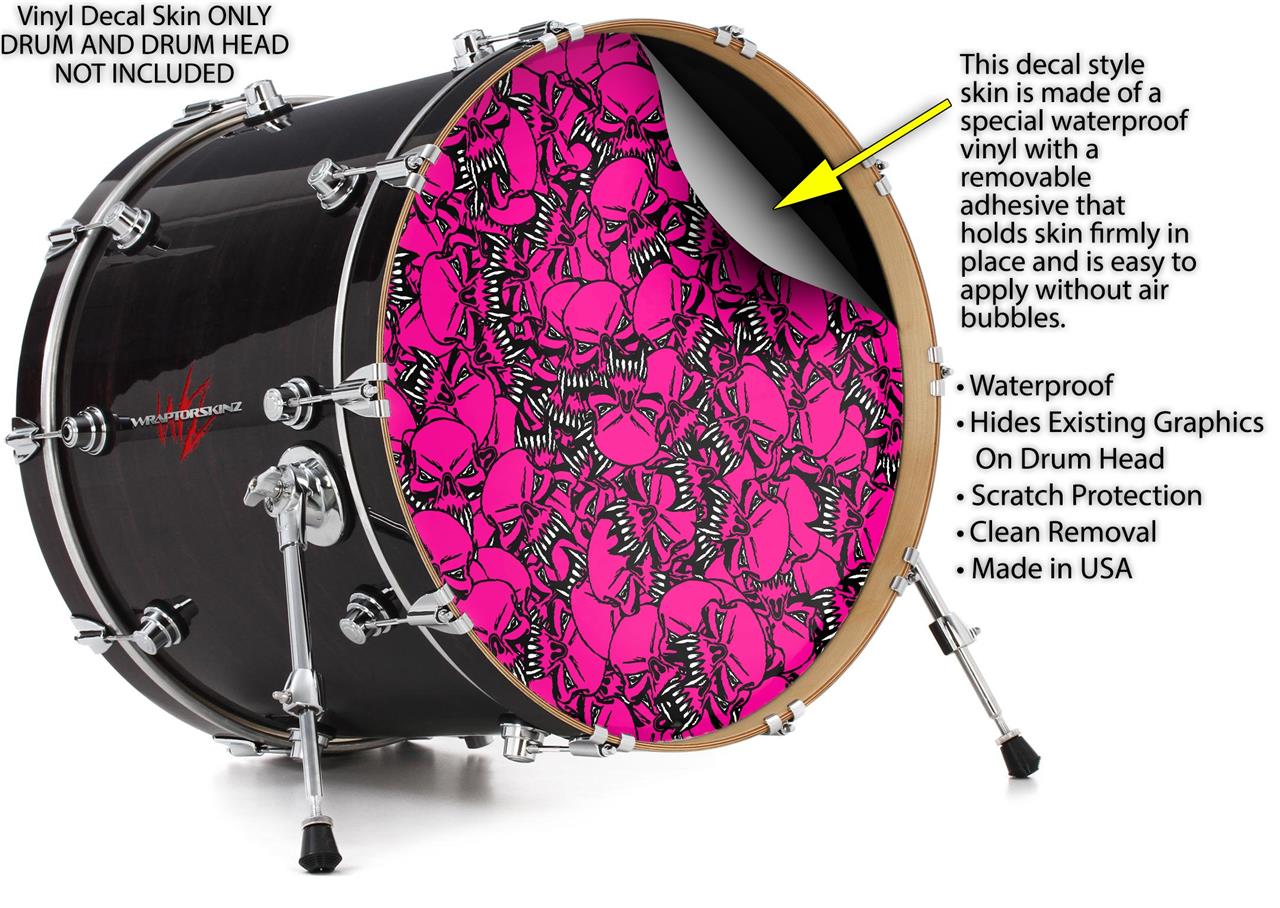 Vinyl Decal Skin Wrap for 22" Bass Kick Drum Head Scattered Skulls Hot Pink - DRUM HEAD NOT INCLUDED