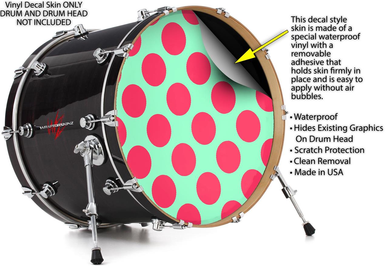 Vinyl Decal Skin Wrap for 22" Bass Kick Drum Head Kearas Polka Dots Pink And Blue - DRUM HEAD NOT INCLUDED