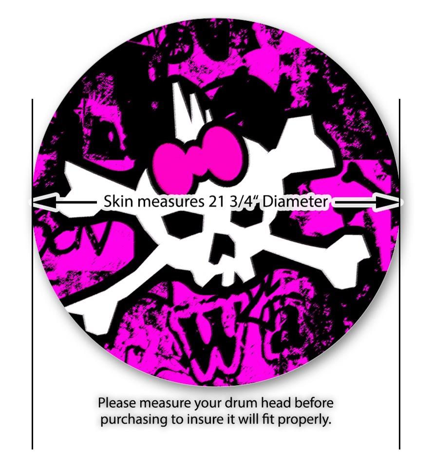 This design also available in other sizes. WraptorSkinz® skin wraps compatible with most kick drum heads. Printed using superb photo quality designs and vibrant colors printed with special fade resistant inks that last even in direct sun for years. WraptorSkinz are a composite three layer commercial grade materials vinyl. The bottom layer is a air release, grey block out removable adhesive that hides existing graphics on the drum head and is easily applied without air bubbles. The middle layer is a flexible vinyl printed with UV protected, fade resistant inks that deliver superb photo quality designs in vibrant colors. Finally, we bond a professional grade laminate over the entire skin adding a glossy protective finish.