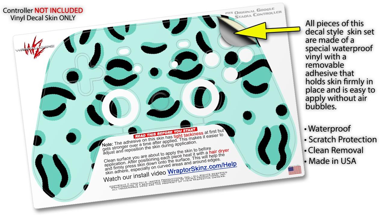 Skin Decal Wrap works with Original Google Stadia Controller Teal Cheetah Skin Only CONTROLLER NOT INCLUDED