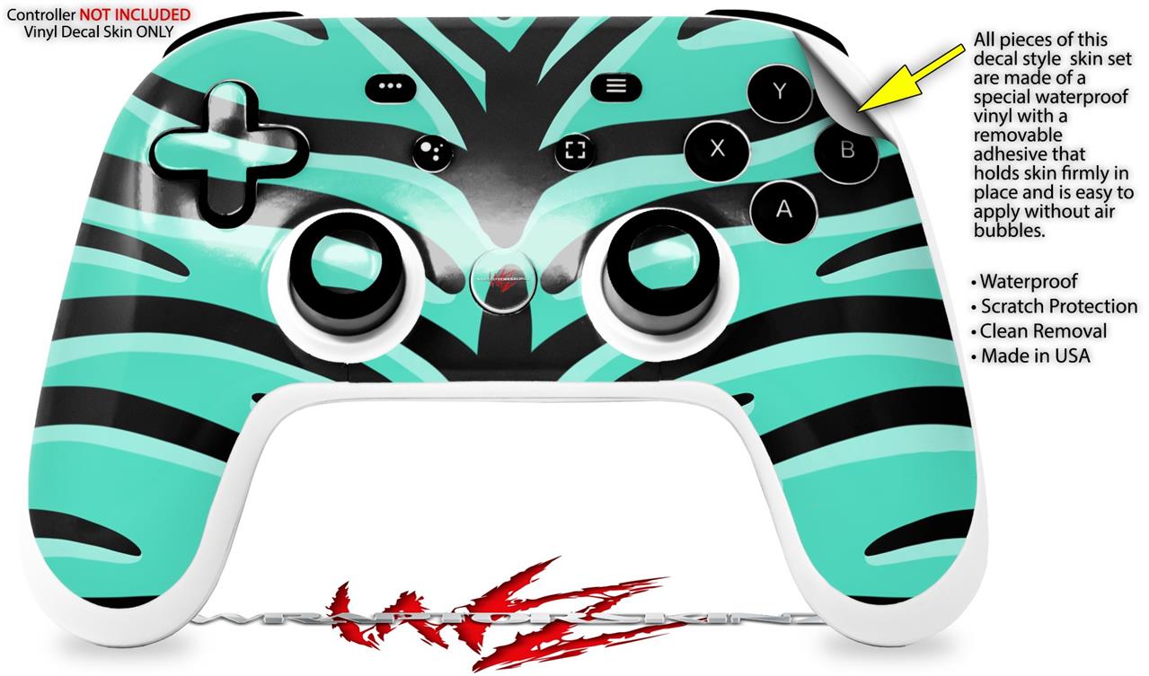 Skin Decal Wrap works with Original Google Stadia Controller Teal Tiger Skin Only CONTROLLER NOT INCLUDED