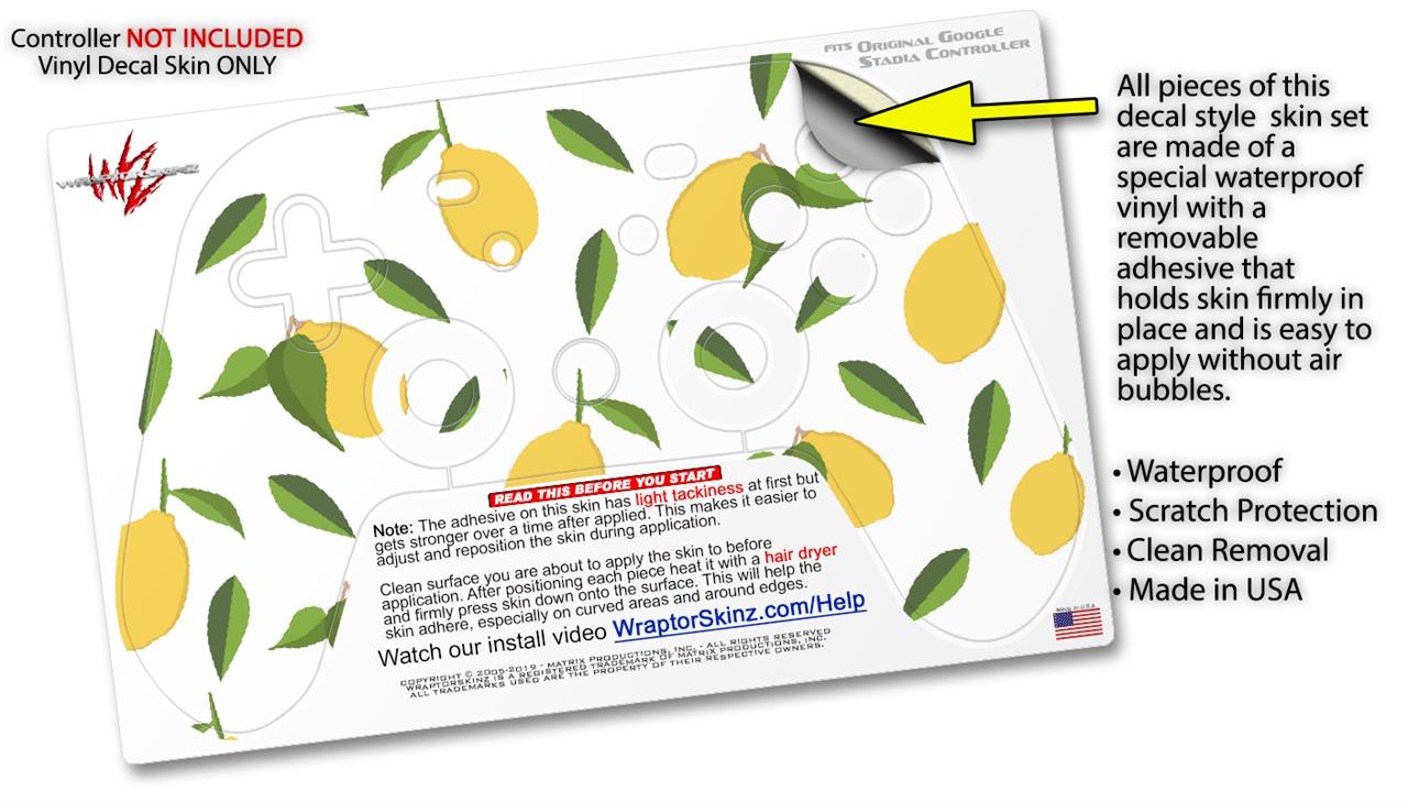 Skin Decal Wrap works with Original Google Stadia Controller Lemon Leaves White Skin Only CONTROLLER NOT INCLUDED