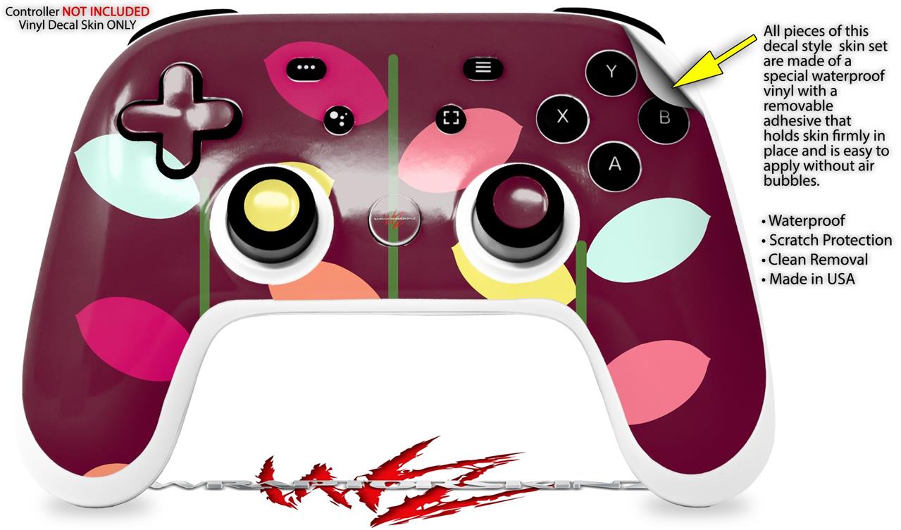 Skin Decal Wrap works with Original Google Stadia Controller Plain Leaves On Burgundy Skin Only CONTROLLER NOT INCLUDED