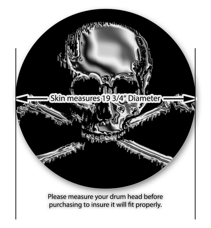 Vinyl Decal Skin Wrap for 20" Bass Kick Drum Head Chrome Skull on Black - DRUM HEAD NOT INCLUDED