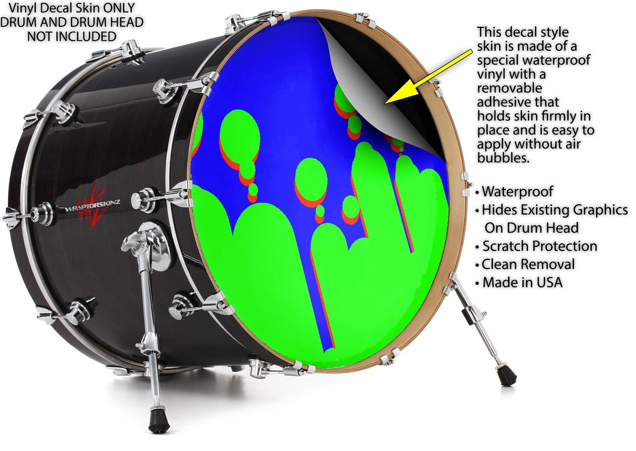 Decal Skin works with most 24" Bass Kick Drum Heads Drip Blue Green Red - DRUM HEAD NOT INCLUDED