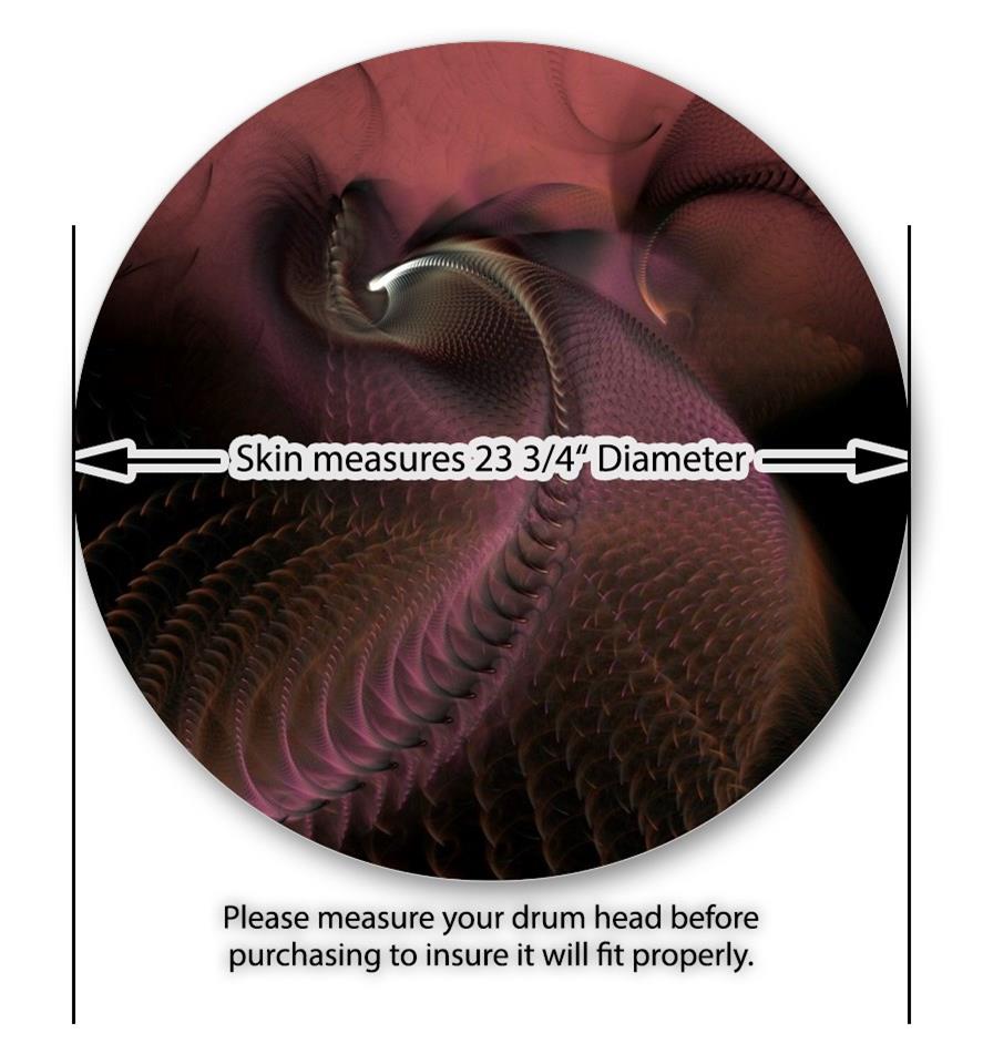 This design also available in other sizes. WraptorSkinz® skin wraps compatible with most kick drum heads. Printed using superb photo quality designs and vibrant colors printed with special fade resistant inks that last even in direct sun for years. WraptorSkinz are a composite three layer commercial grade materials vinyl. The bottom layer is a air release, grey block out removable adhesive that hides existing graphics on the drum head and is easily applied without air bubbles. The middle layer is a flexible vinyl printed with UV protected, fade resistant inks that deliver superb photo quality designs in vibrant colors. Finally, we bond a professional grade laminate over the entire skin adding a glossy protective finish.