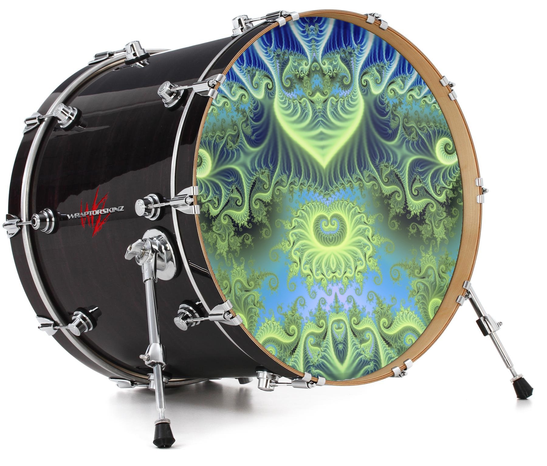 This design also available in other sizes. WraptorSkinz® skin wraps compatible with most kick drum heads. Printed using superb photo quality designs and vibrant colors printed with special fade resistant inks that last even in direct sun for years. WraptorSkinz are a composite three layer commercial grade materials vinyl. The bottom layer is a air release, grey block out removable adhesive that hides existing graphics on the drum head and is easily applied without air bubbles. The middle layer is a flexible vinyl printed with UV protected, fade resistant inks that deliver superb photo quality designs in vibrant colors. Finally, we bond a professional grade laminate over the entire skin adding a glossy protective finish.
