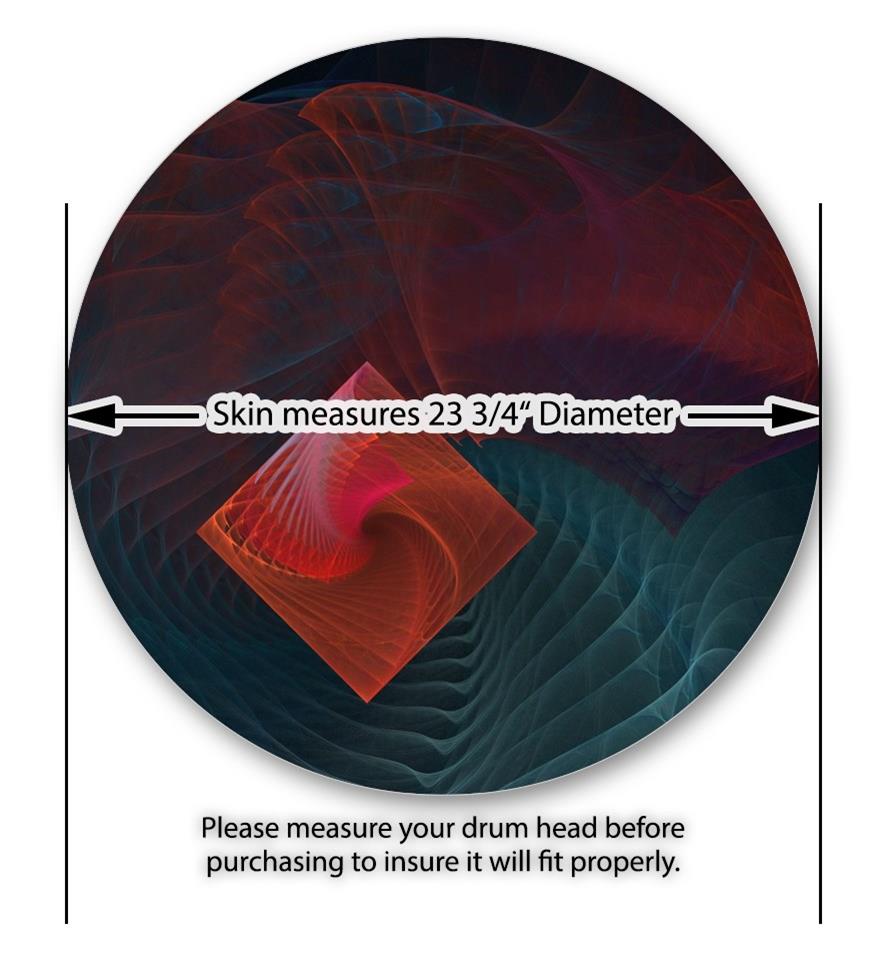 This design also available in other sizes. WraptorSkinz® skin wraps compatible with most kick drum heads. Printed using superb photo quality designs and vibrant colors printed with special fade resistant inks that last even in direct sun for years. WraptorSkinz are a composite three layer commercial grade materials vinyl. The bottom layer is a air release, grey block out removable adhesive that hides existing graphics on the drum head and is easily applied without air bubbles. The middle layer is a flexible vinyl printed with UV protected, fade resistant inks that deliver superb photo quality designs in vibrant colors. Finally, we bond a professional grade laminate over the entire skin adding a glossy protective finish.