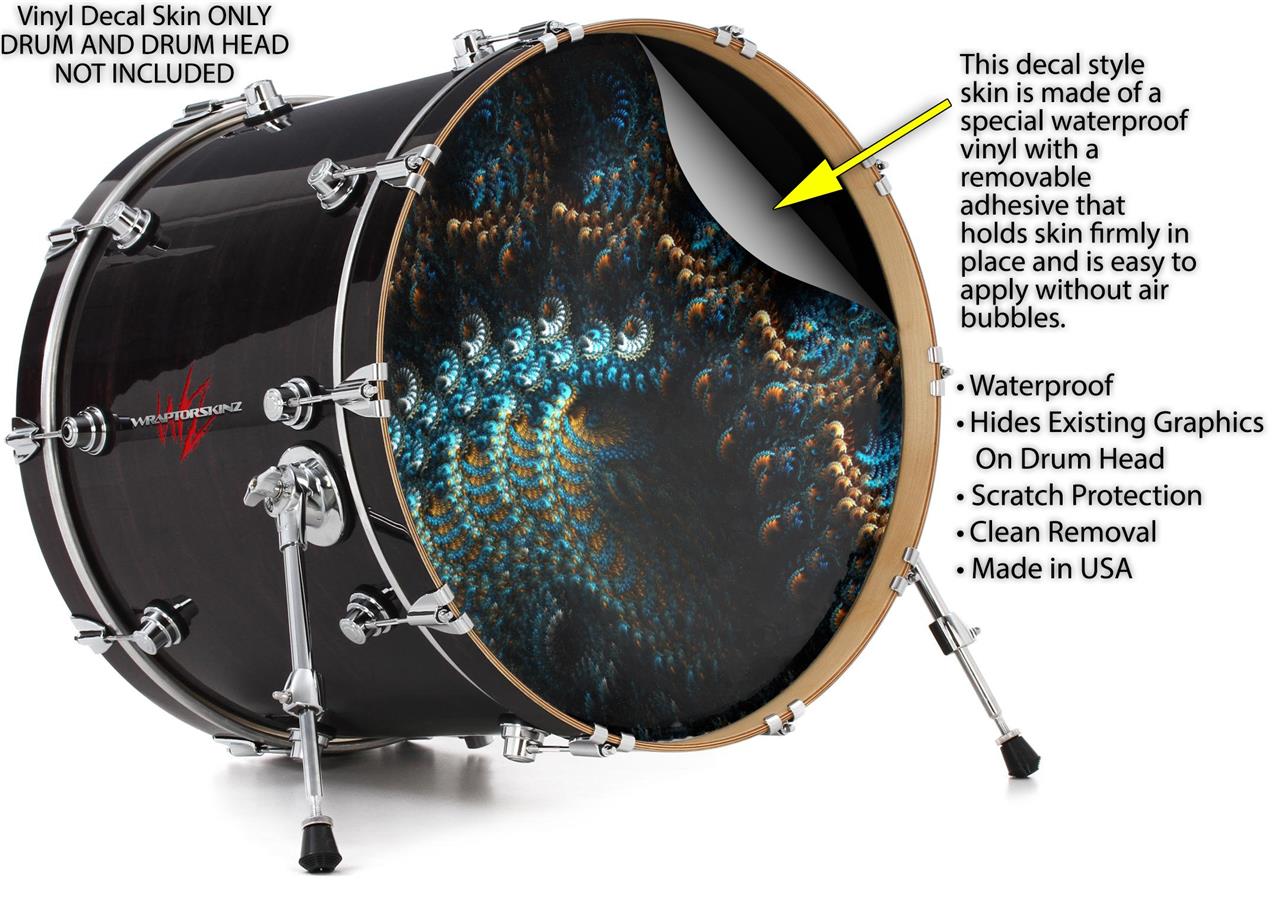 This design also available in other sizes. WraptorSkinz® skin wraps compatible with most kick drum heads. Printed using superb photo quality designs and vibrant colors printed with special fade resistant inks that last even in direct sun for years. WraptorSkinz are a composite three layer commercial grade materials vinyl. The bottom layer is a air release, grey block out removable adhesive that hides existing graphics on the drum head and is easily applied without air bubbles. The middle layer is a flexible vinyl printed with UV protected, fade resistant inks that deliver superb photo quality designs in vibrant colors. Finally, we bond a professional grade laminate over the entire skin adding a glossy protective finish.