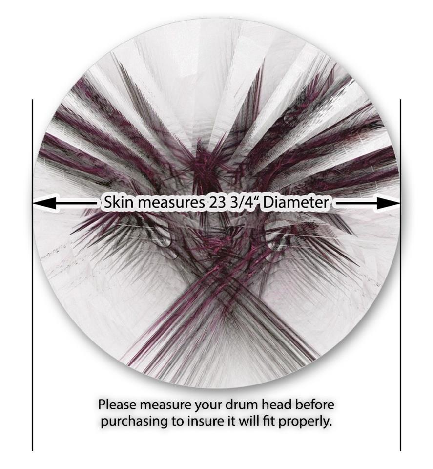 This design also available in other sizes. WraptorSkinz® skin wraps compatible with most kick drum heads. Printed using superb photo quality designs and vibrant colors printed with special fade resistant inks that last even in direct sun for years. WraptorSkinz are a composite three layer commercial grade materials vinyl. The bottom layer is a air release, grey block out removable adhesive that hides existing graphics on the drum head and is easily applied without air bubbles. The middle layer is a flexible vinyl printed with UV protected, fade resistant inks that deliver superb photo quality designs in vibrant colors. Finally, we bond a professional grade laminate over the entire skin adding a glossy protective finish.