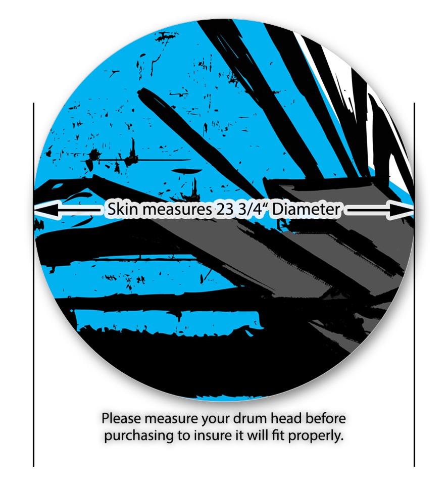 This design also available in other sizes. WraptorSkinz® skin wraps compatible with most kick drum heads. Printed using superb photo quality designs and vibrant colors printed with special fade resistant inks that last even in direct sun for years. WraptorSkinz are a composite three layer commercial grade materials vinyl. The bottom layer is a air release, grey block out removable adhesive that hides existing graphics on the drum head and is easily applied without air bubbles. The middle layer is a flexible vinyl printed with UV protected, fade resistant inks that deliver superb photo quality designs in vibrant colors. Finally, we bond a professional grade laminate over the entire skin adding a glossy protective finish.