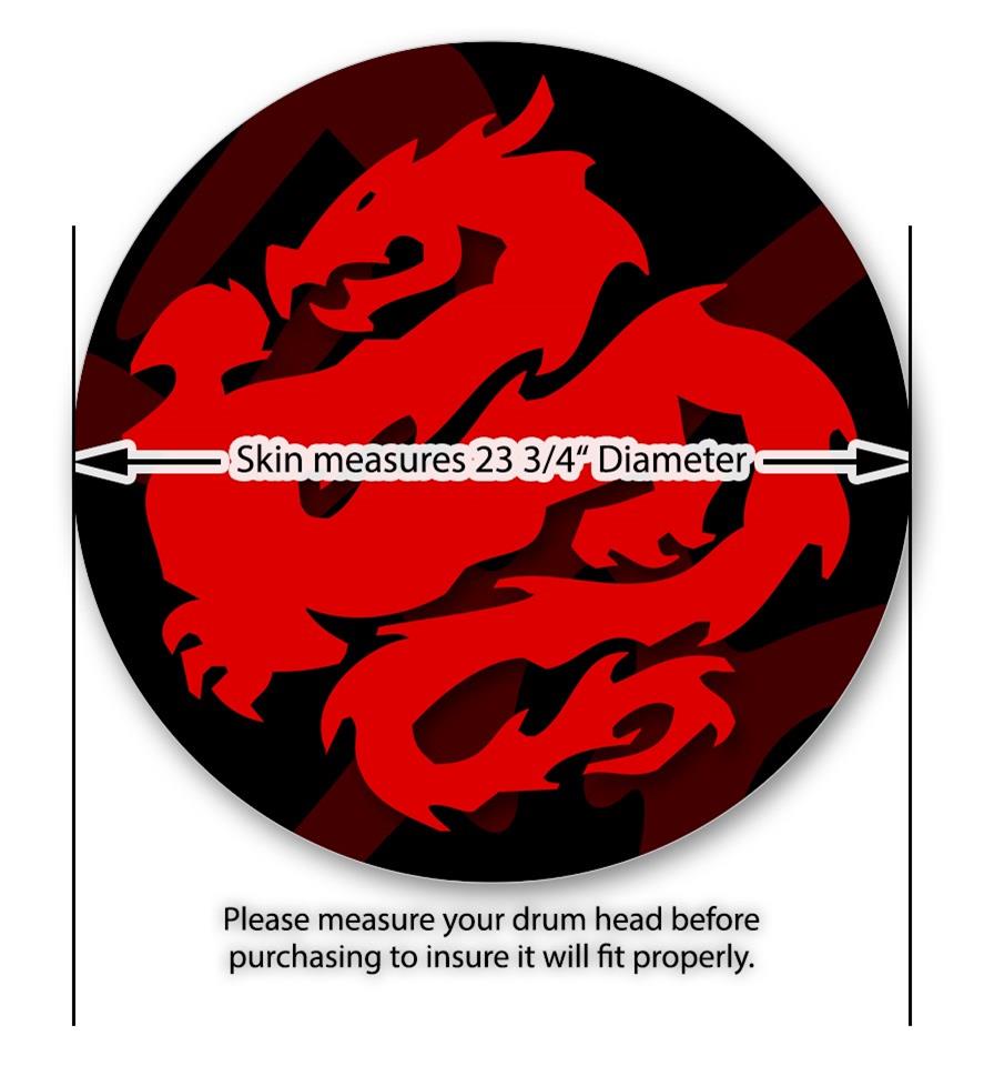 Decal Skin works with most 24" Bass Kick Drum Heads Oriental Dragon Red on Black - DRUM HEAD NOT INCLUDED