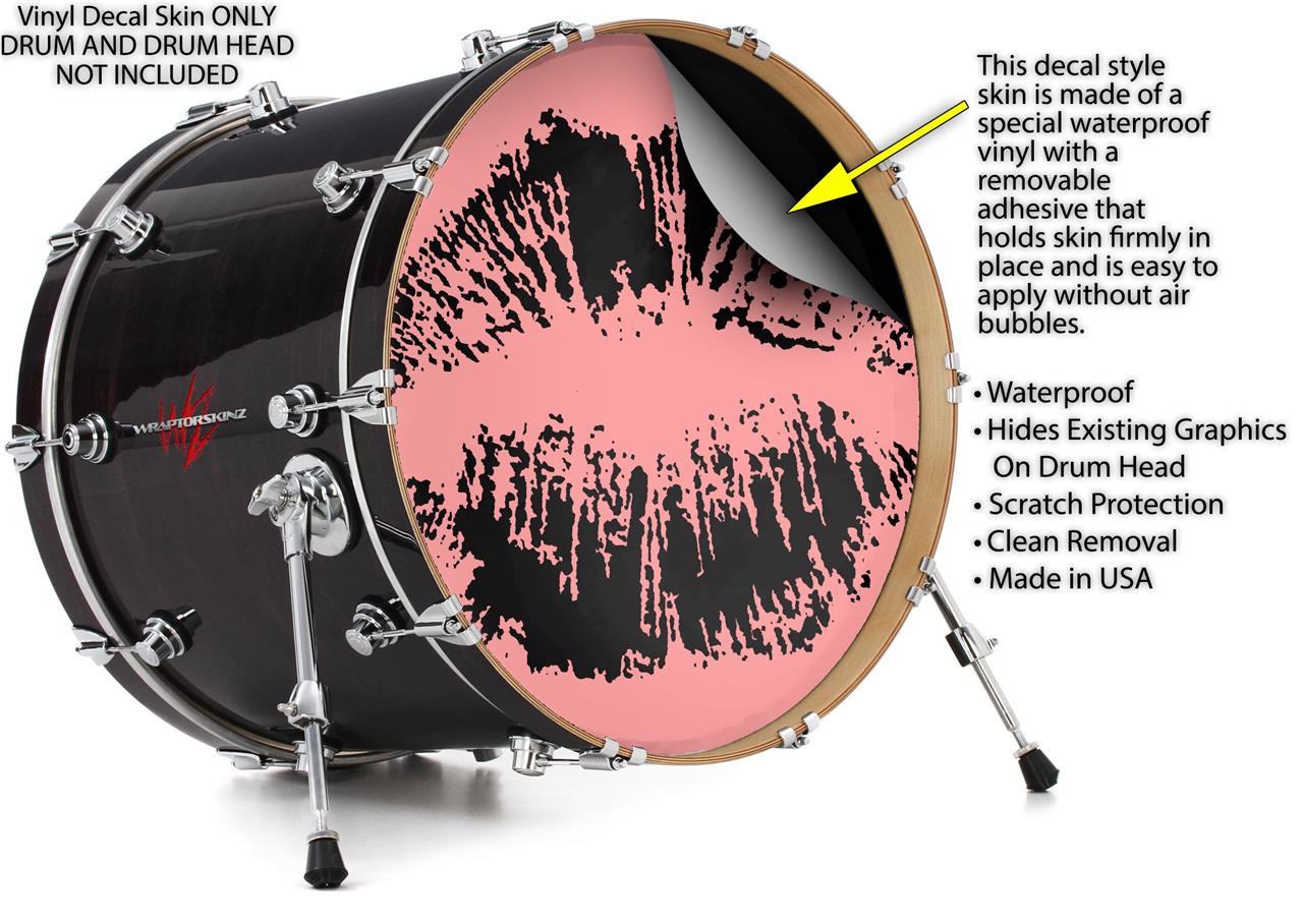 Decal Skin works with most 24" Bass Kick Drum Heads Big Kiss Black on Pink - DRUM HEAD NOT INCLUDED
