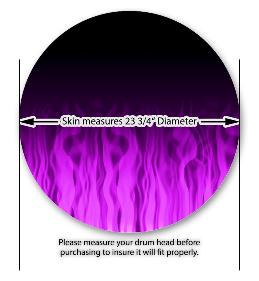 Decal Skin works with most 24" Bass Kick Drum Heads Fire Flames Purple - DRUM HEAD NOT INCLUDED