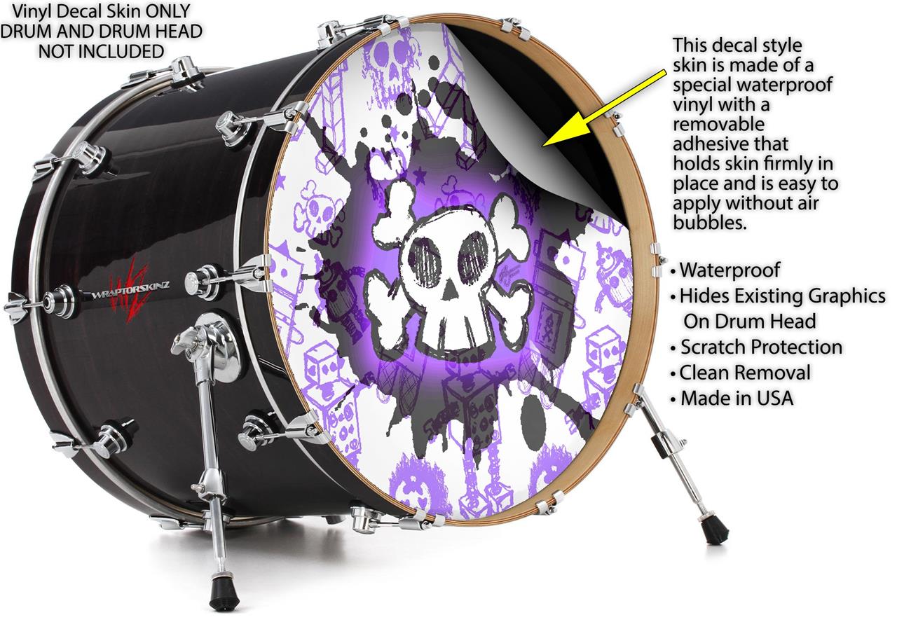 Decal Skin works with most 24" Bass Kick Drum Heads Cartoon Skull Purple - DRUM HEAD NOT INCLUDED
