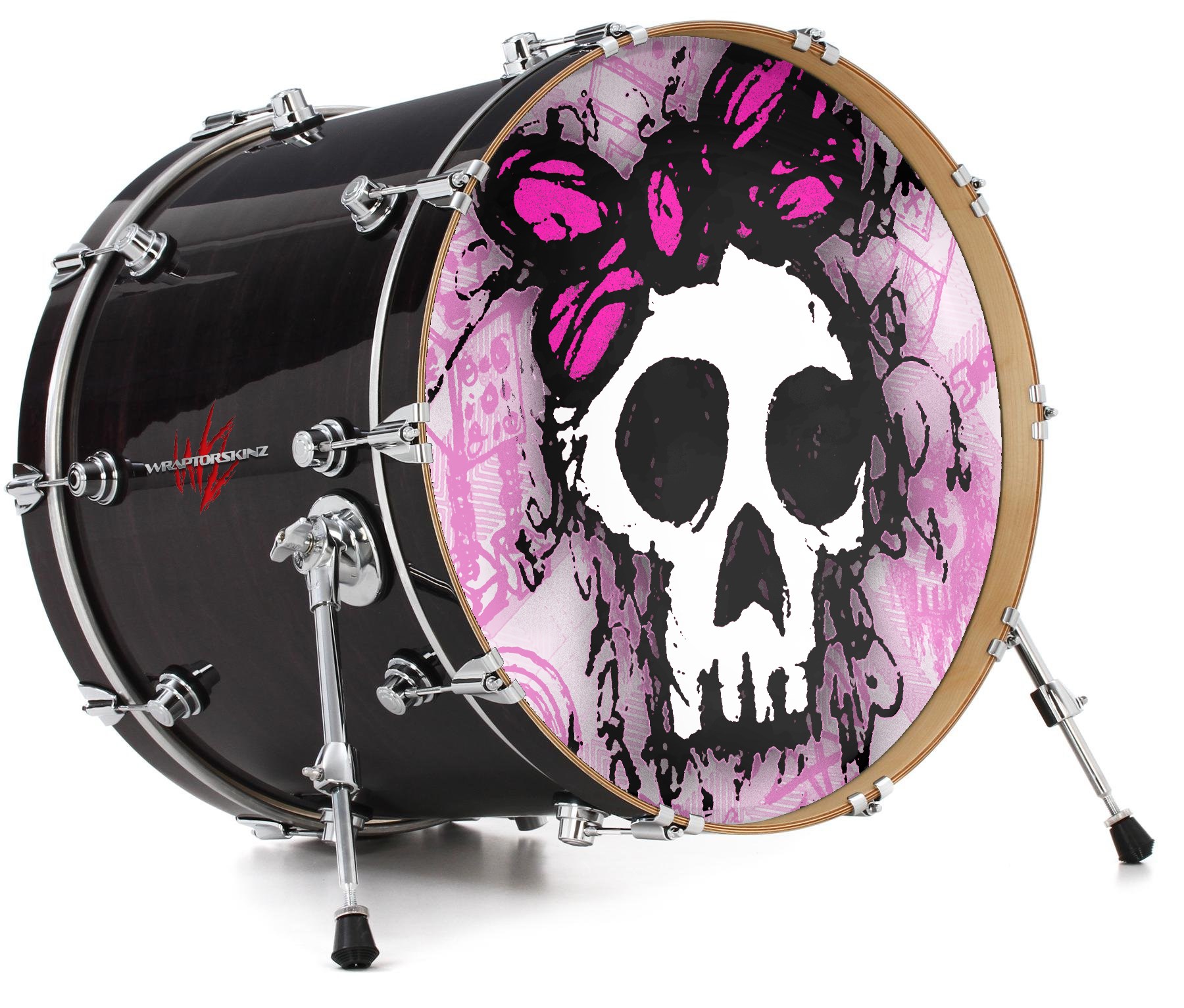 This design also available in other sizes. WraptorSkinz® skin wraps compatible with most kick drum heads. Printed using superb photo quality designs and vibrant colors printed with special fade resistant inks that last even in direct sun for years. WraptorSkinz are a composite three layer commercial grade materials vinyl. The bottom layer is a air release, grey block out removable adhesive that hides existing graphics on the drum head and is easily applied without air bubbles. The middle layer is a flexible vinyl printed with UV protected, fade resistant inks that deliver superb photo quality designs in vibrant colors. Finally, we bond a professional grade laminate over the entire skin adding a glossy protective finish.
