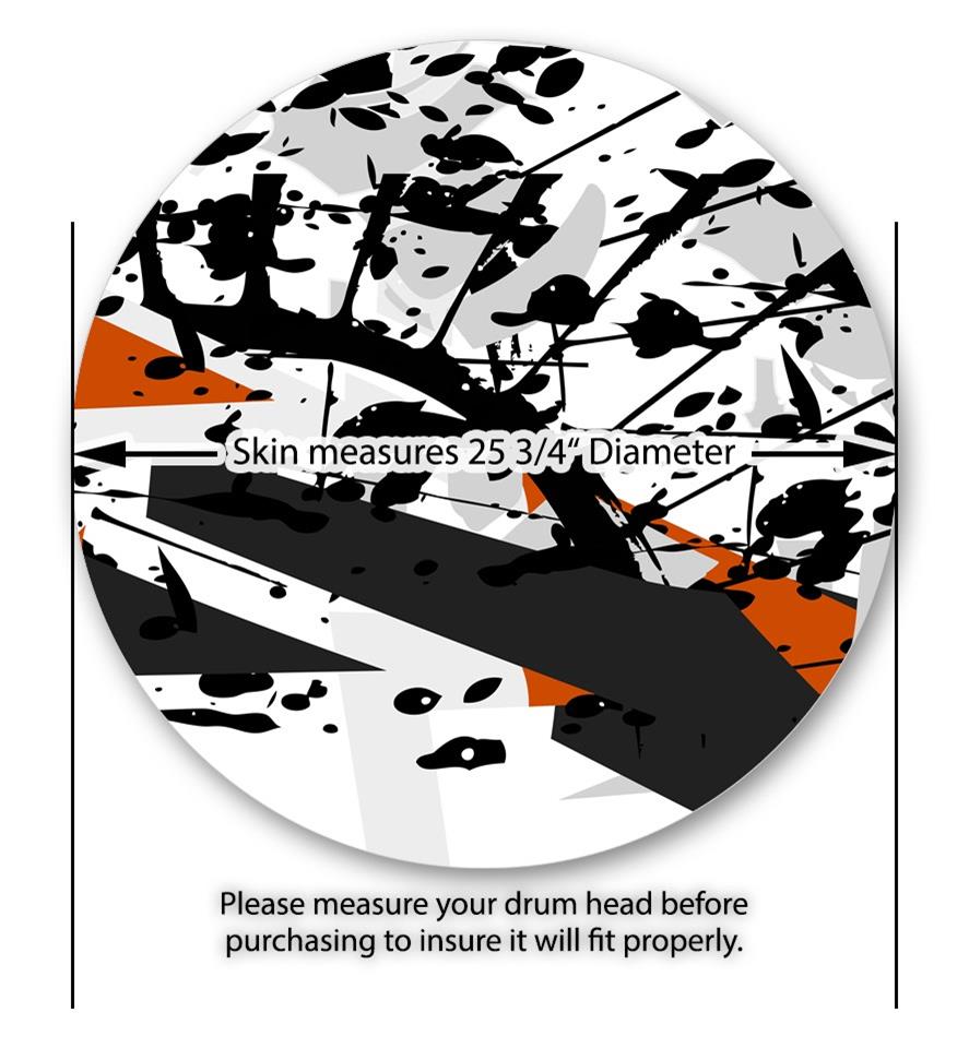This design also available in other sizes. WraptorSkinz® skin wraps compatible with most kick drum heads. Printed using superb photo quality designs and vibrant colors printed with special fade resistant inks that last even in direct sun for years. WraptorSkinz are a composite three layer commercial grade materials vinyl. The bottom layer is a air release, grey block out removable adhesive that hides existing graphics on the drum head and is easily applied without air bubbles. The middle layer is a flexible vinyl printed with UV protected, fade resistant inks that deliver superb photo quality designs in vibrant colors. Finally, we bond a professional grade laminate over the entire skin adding a glossy protective finish.