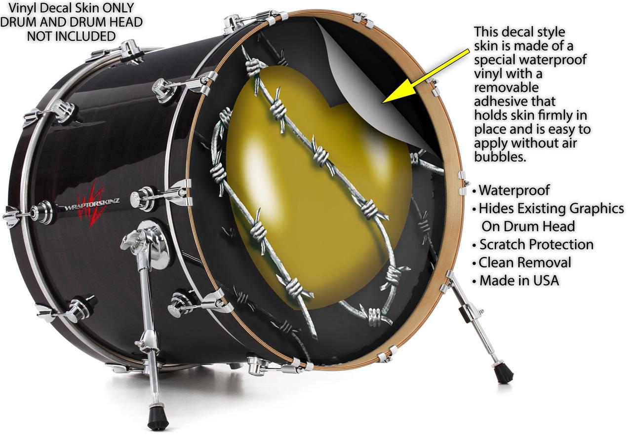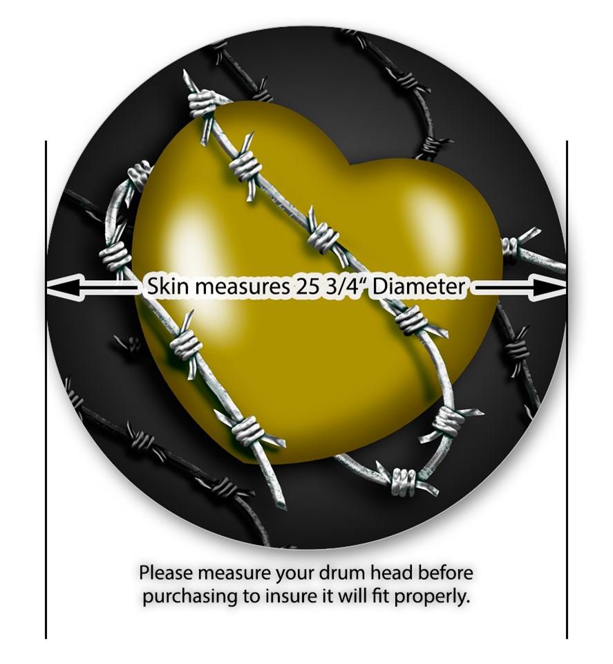 Decal Skin works with most 26" Bass Kick Drum Heads Barbwire Heart Yellow - DRUM HEAD NOT INCLUDED