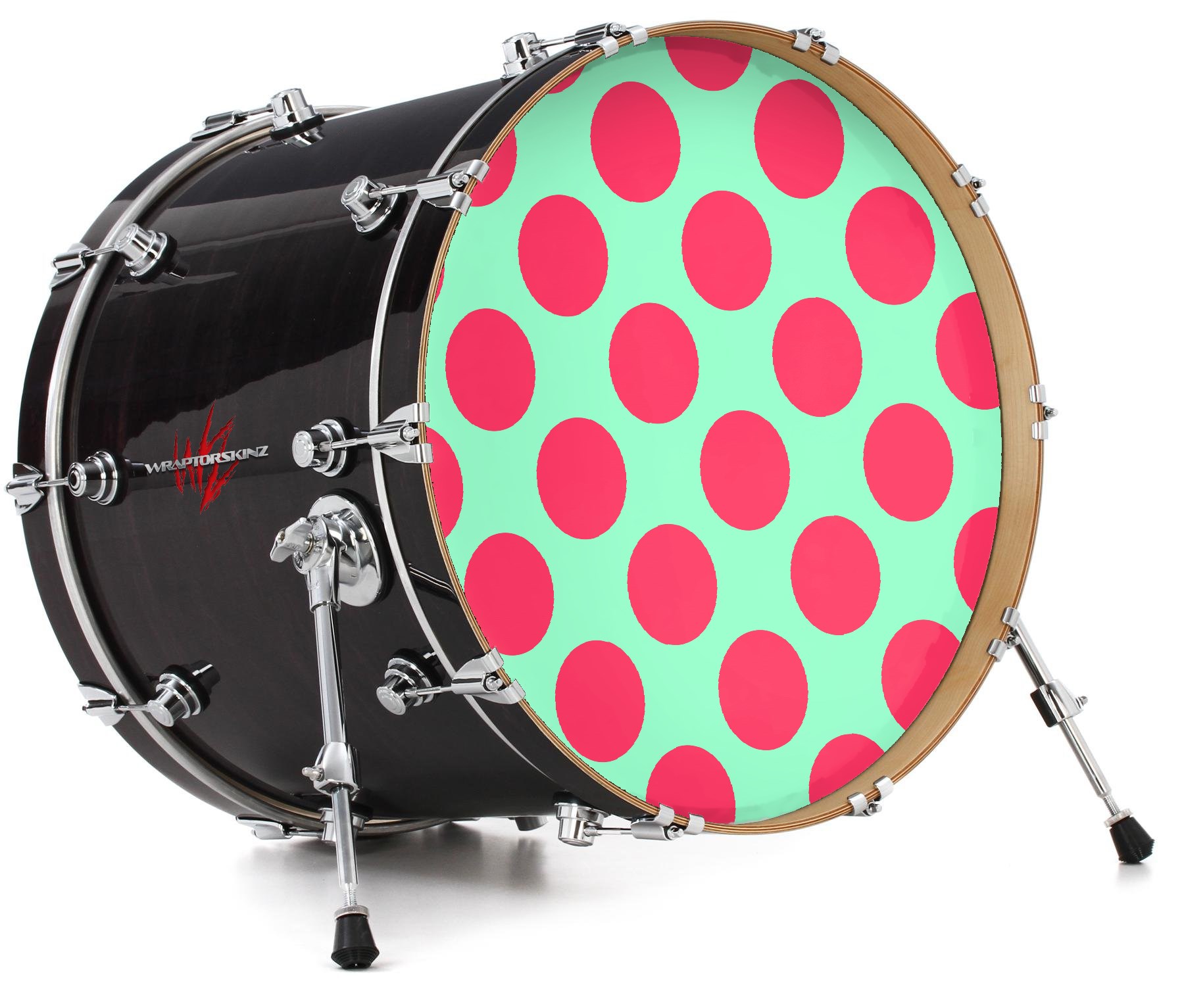 Decal Skin works with most 26" Bass Kick Drum Heads Kearas Polka Dots Pink And Blue - DRUM HEAD NOT INCLUDED