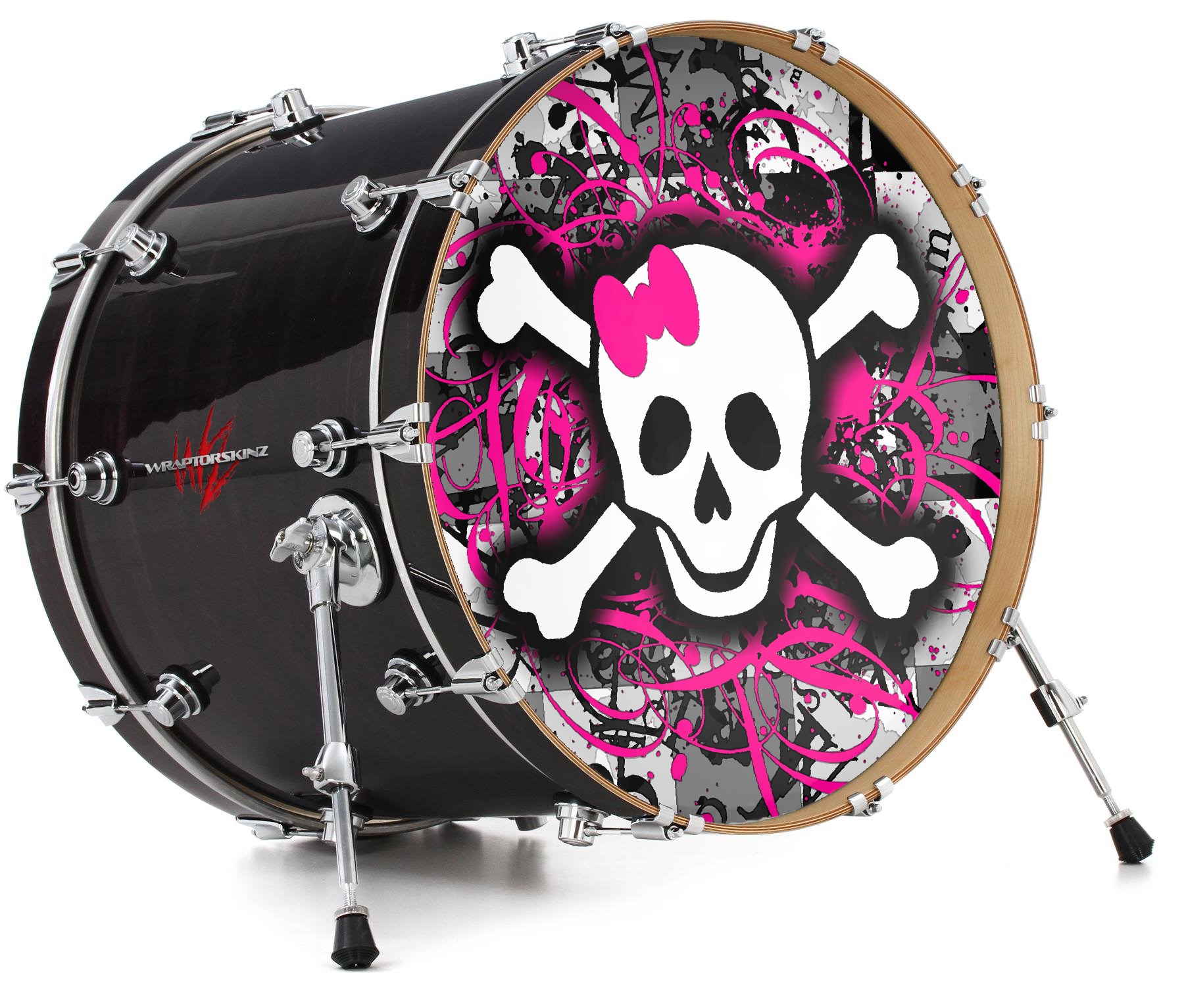Decal Skin works with most 26" Bass Kick Drum Heads Splatter Girly Skull - DRUM HEAD NOT INCLUDED