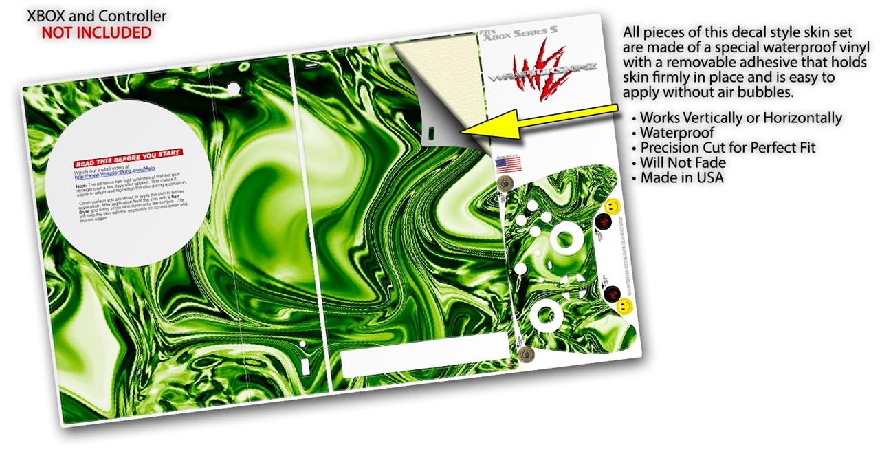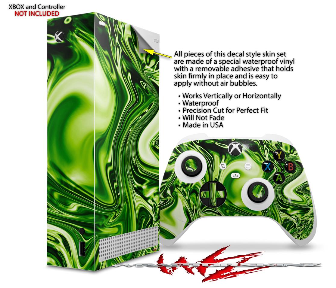 WraptorSkinz Skin Wrap compatible with the 2020 XBOX Series S Console and Controller Liquid Metal Chrome Neon Green (XBOX NOT INCLUDED)