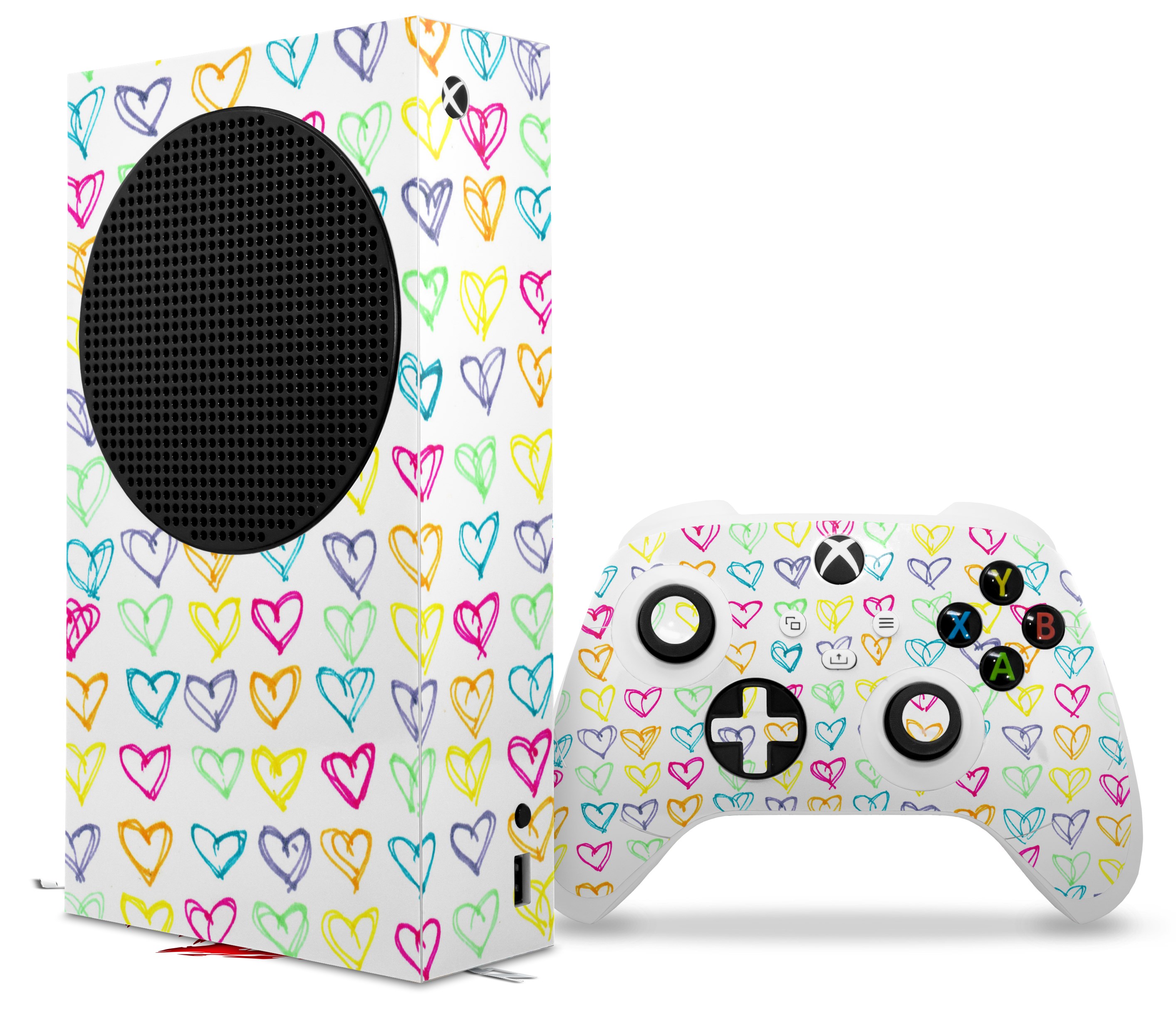 WraptorSkinz Skin Wrap compatible with the 2020 XBOX Series S Console and Controller Kearas Hearts White (XBOX NOT INCLUDED)